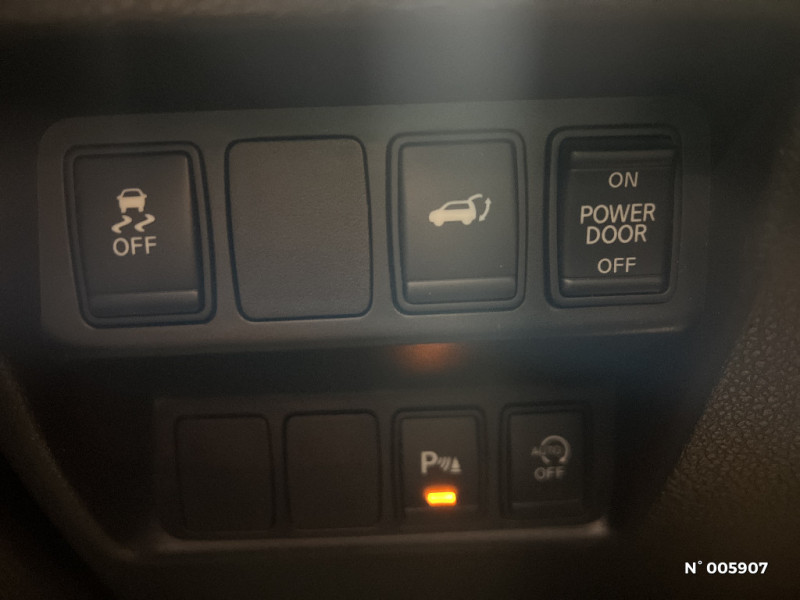 Vitres latérales AR et vitre de hayon surteintées / ABS Système antiblocage des freins / Accoudoir AR avec porte-gobelets / Appuis-tête aux places AR / Banquette AR coulissante et rabattable 60/40 / Barres de toit longitudinales couleur argent / Boîte de vitesses manuelle 6 vitesses / Contour des vitres latérales chromé / Démarrage avec bouton Stop/Start / Feux diurnes à LED avec signature lumineuse / Frein à main électrique / Insert chromé sur le pare-chocs AV / Nissan AVM - Vue panoramique 360° / Nissan Connect / Nissan Safety Shield / Nissan Safety Shield Plus / Pare-soleil conducteur et passager avec miroir de courtoisie éclairé / Phares antibrouillard AV avec cerclages chromés / Phares Bi-LED / Plancher de coffre modulable / Poignées de portes chromées / Points d'ancrage de siège enfants ISOFIX à l'AR / Prise auxiliaire jack 3.5" dans accoudoir central AV / Prise 12V sur console centrale AV / Régulateur et limiteur de vitesses avec commandes au volant / Rétroviseur intérieur électrochromatique / Sièges AV anti-fatigue / Système audio RDS CD avec commandes au volant, 6HP et connexion USB / Volant et pommeau de levier de vitesses gainés cuir / 7 places / Système "Châssis Control" / Système d'ouverture et de démarrage sans clé "Intelligent key" / Toit panoramique en verre à ouverture électrique