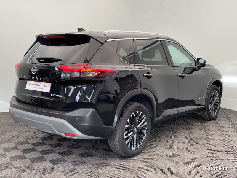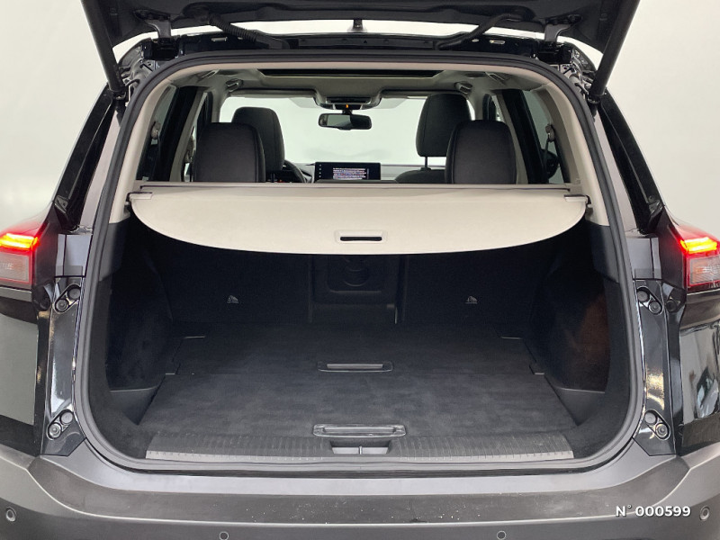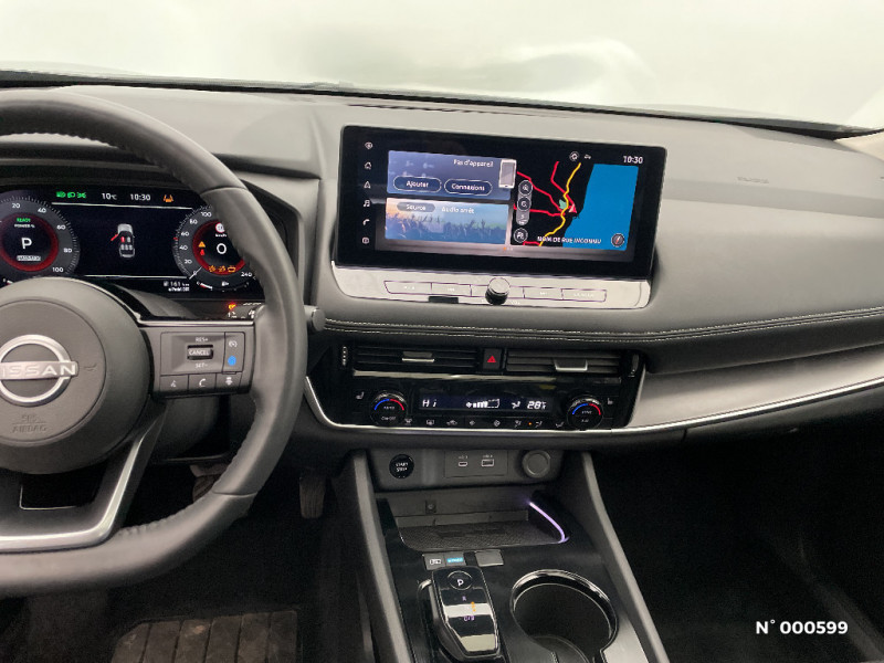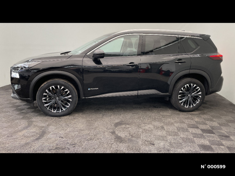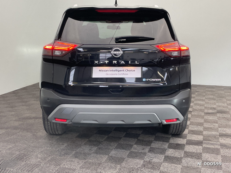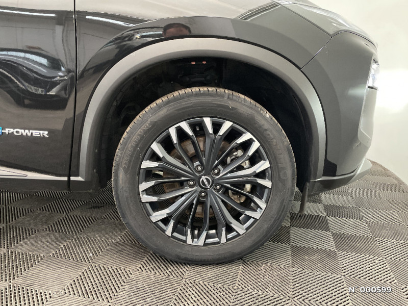 Accoudoir central AR avec porte-gobelets (2) / Accoudoir central AV avec ouverture papillon / Alarme périmétrique / Antenne aileron de requin / Badges e-POWER / Boîte de vitesses automatique 1 rapports / Buses de ventilation AR / Cache-bagages amovible / Chargeur à induction pour Smartphone 15W / Pare-soleil conducteur et passager avec miroirs de courtoisie, jalousies et éclairage / Plancher de coffre modulable / Poignées de maintien pour passager AV et AR / Points d'ancrage pour sièges enfants ISOFIX à l'AR (x2) / Porte-gobelets AV (x2) / Combiné d'instrumentation digital avec écran 12,3'' TFT / Commandes au volant: contrôle de l'ordinateur de bord, audio, téléphone, régulateur et limiteur de vitesse / Compartiment pour lunettes de soleil / Console centrale flottante / Double port USB AR (USB-A et USB-C) / Double port USB AV (USB-A et USB-C) / Eclairage d'ambiance (console centrale) / Eclairage du coffre / Feu stop central LED / Feux de détresse à déclenchement automatique / Feux de route adaptatifs / Frein à main électrique avec aide au stationnement/démarrage et fonction Autohold / Freinage d'urgence anticollision AR / Freinage d'urgence intelligent avec détection piétons, cyclistes et intersections / Hayon électrique avec ouverture mains libres / Kit de réparation pneumatique / Liseuses AV et AR / NBAS (amplificateur de freinage d'urgence) / Nissan AVM - Vision Intelligente à 360° / Nissan Connect Services / Ouverture des portières AR à 85° / Prise 12V dans le coffre / ProPILOT avec Navi-link : technologie de conduite assistée / Rails de toit longitudinaux chromés / Régulateur de vitesse intelligent avec ajustement aux limitations de vitesse / Rétroviseur intérieur électrochromatique / Sécurité enfants sur les portes AR / Sélection du mode de conduite (ECO, STANDARD et SPORT) / Siège conducteur avec réglage lombaire électrique 2 voies / Sièges AV réglables électriquement avec fonction mémoire / Système d'alerte anticollision AR intelligent avec détection des objets en mouvement / Système d'alerte prédictif anticollision frontale / Système de navigation NissanConnect avec écran tactile 12,3" : Live Traffic et cartes 3D, Navigation porte-à-porte, Recherche par Points d'Intérêt, Google Street View, Vue Satellite et Météo, Mise à jour des cartes et logiciels, Prix des carburants, Commandes vocales avancées avec Amazon Alexa / Système d'ouverture et de démarrage sans clé "Intelligent Key" / Technologie e-Pedal Step / Trappe de carburant sans bouchon / 6 crochets de fixation dans le coffre / ABS (Système antiblocage des freins) avec EBD (Répartiteur électronique de freinage)