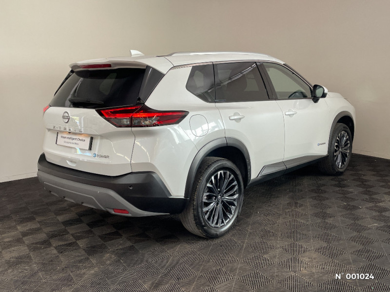 6 crochets de fixation dans le coffre / Chargeur à induction pour Smartphone 15W / Combiné d'instrumentation digital avec écran 12,3'' TFT / Commandes au volant: contrôle de l'ordinateur de bord, audio, téléphone, régulateur et limiteur de vitesse / Rails de toit longitudinaux chromés / Régulateur de vitesse intelligent avec ajustement aux limitations de vitesse / Rétroviseur intérieur électrochromatique / Sécurité enfants sur les portes AR / Sélection du mode de conduite (ECO, STANDARD et SPORT) / Siège conducteur avec réglage lombaire électrique 2 voies / Boîte de vitesses automatique 1 rapports / Buses de ventilation AR / Cache-bagages amovible / Compartiment pour lunettes de soleil / Console centrale flottante / Double port USB AR (USB-A et USB-C) / Double port USB AV (USB-A et USB-C) / Eclairage d'ambiance (console centrale) / Eclairage du coffre / Feu stop central LED / Feux de détresse à déclenchement automatique / Feux de route adaptatifs / Frein à main électrique avec aide au stationnement/démarrage et fonction Autohold / Freinage d'urgence anticollision AR / Freinage d'urgence intelligent avec détection piétons, cyclistes et intersections / Hayon électrique avec ouverture mains libres / Kit de réparation pneumatique / Liseuses AV et AR / NBAS (amplificateur de freinage d'urgence) / Nissan AVM - Vision Intelligente à 360° / Nissan Connect Services / Ouverture des portières AR à 85° / Pare-soleil conducteur et passager avec miroirs de courtoisie, jalousies et éclairage / Plancher de coffre modulable / Poignées de maintien pour passager AV et AR / Points d'ancrage pour sièges enfants ISOFIX à l'AR (x2) / Porte-gobelets AV (x2) / Prise 12V dans le coffre / ProPILOT avec Navi-link : technologie de conduite assistée / Sièges AV réglables électriquement avec fonction mémoire / Système d'alerte anticollision AR intelligent avec détection des objets en mouvement / Système d'alerte prédictif anticollision frontale / Système de navigation NissanConnect avec écran tactile 12,3" : Live Traffic et cartes 3D, Navigation porte-à-porte, Recherche par Points d'Intérêt, Google Street View, Vue Satellite et Météo, Mise à jour des cartes et logiciels, Prix des carburants, Commandes vocales avancées avec Amazon Alexa / Système d'ouverture et de démarrage sans clé "Intelligent Key" / ABS (Système antiblocage des freins) avec EBD (Répartiteur électronique de freinage) / Accoudoir central AR avec porte-gobelets (2) / Accoudoir central AV avec ouverture papillon / Alarme périmétrique / Antenne aileron de requin / Badges e-POWER / Technologie e-Pedal Step / Trappe de carburant sans bouchon