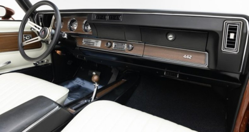 - Marque : Oldsmobile - Modèle : 442 Convertible - Année : 1971 - Couleur extérieure : Sienna White - Couleur intérieure : Non spécifié - VIN : B7458344671M178207 - Moteur : 455 CI Rocket V8 (rénové) - Boîte de vitesses : Turbo 400 automatique (rénové) - Arrière : rénové - Conditionnement climatique fonctionnel - Kilométrage : 105 miles depuis la restauration - État : Restoration complète, très bon état général. Provenance : California. Disponibilité : environ 7 semaines, clés en main. 136 000 € tout compris (importation, taxes, procédure d'immatriculation). Annonce publiée le 11/12/2025