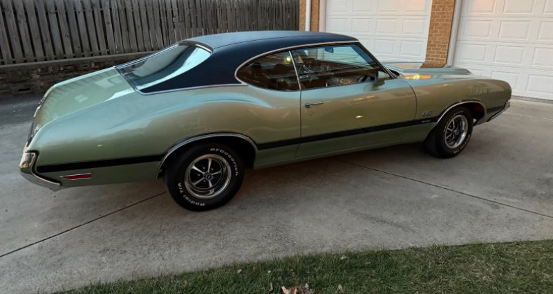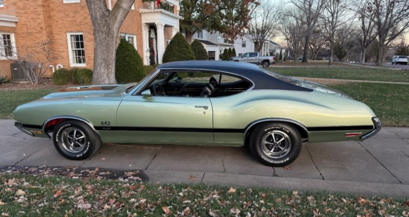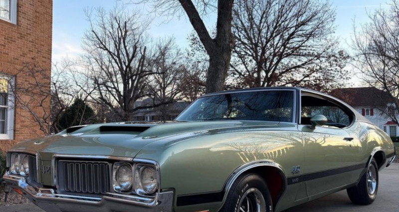 - Année : 1970 - Modèle : Oldsmobile 442 W-30 - Couleur extérieure : Aspen Green avec bandes noires et toit noir - Couleur intérieure : Noir - Moteur : 455 cubic inch Oldsmobile V8 avec 370 ch / 500 lb-ft de couple - Boîte de vitesses : transmission automatique OW code - Kilométrage : 54 000 miles - Travaux : restauration corps et moteur en rotisserie complète - Équipements : climatisation, direction assistée, freinage assisté, capot à double soufflet en fibre de verre, roues Super Stock I, pneus BF Goodrich Radial TA - Documentation : dossier de photos de restauration, dossier de receipts et documents d'entretien totalisant plus de 27 000 dollars. Provenance : Kansas. Disponibilité : environ 7 semaines, clés en main. 103 500 € tout compris (importation, taxes, procédure d'immatriculation). Annonce publiée le 11/12/2025