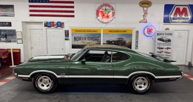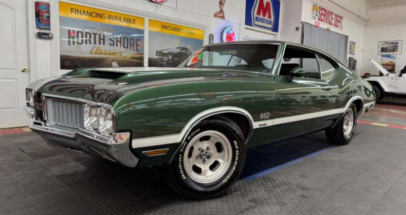 - Marque : Oldsmobile - Modèle : 442 W-30 - Année : 1970 - Couleur extérieure : Green - Couleur intérieure : Green - Type de carrosserie : 2 portes - Transmission : Automatique - Moteur : 455 C.I. - Kilométrage : 14 154 - Travaux : Peinture et corps restaurés en 1986-1988, moteur pro construit non numérique, freinage et direction assistés, roues originales incluses, boîte de vitesses automatique, boîte arrière 12 bolts 323 gears POSI, alimentation d'air originale incluse, récemment entretien mécanique effectué (4 800 $ de factures). Provenance : Illinois. Disponibilité : environ 7 semaines, clés en main. 53 500 € tout compris (importation, taxes, procédure d'immatriculation). Annonce publiée le 26/12/2025