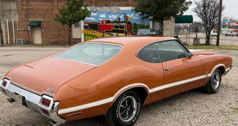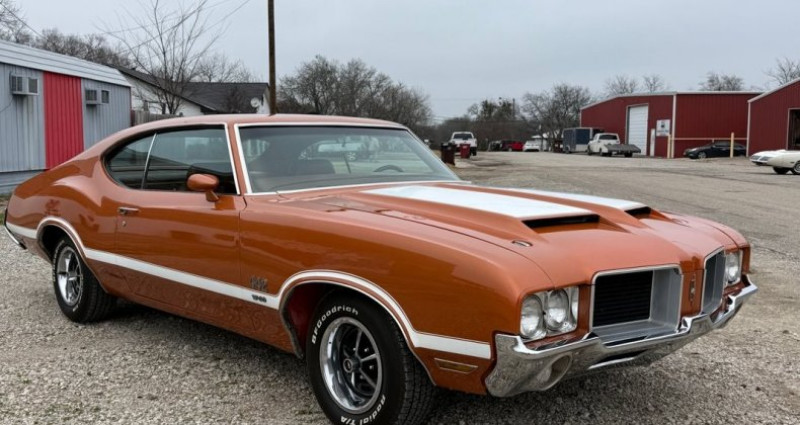 - Marque : Oldsmobile - Modèle : 442 - Année : 1971 - Numéro d'inventaire : 6152 - Couleur extérieure : Orange - Couleur intérieure : Orange - Transmission : 3 vitesses automatique - Moteur : 455 HO V8 (numéros de série correspondants) - Boîte de vitesses : th400 - Arbre à cames arrière posi - Options : climatisation, radio AM/FM avec lecteur 8 pistes, freinage assisté, direction assistée, vitres électriques, régulateur de vitesse, sièges baquets et console, roues Super Stock 1 - État : fonctionne bien, la majorité des indicateurs fonctionnent, les phares et les aubes fonctionnent comme il devrait être - Lieu : Celeste, TX 75423 - Contact : Tony @ 505-503-3274. Provenance : Texas. Disponibilité : environ 7 semaines, clés en main. 61 500 € tout compris (importation, taxes, procédure d'immatriculation). Annonce publiée le 30/12/2025