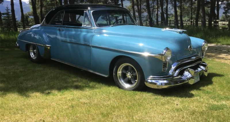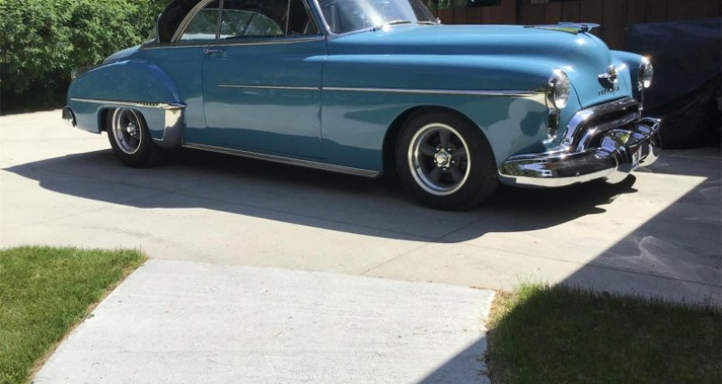 Cet Oldsmobile Rocket 88 Futuramic Holiday Hardtop a été magnifiquement restauré et est équipé d'un moteur Olds 455 et d'une boîte automatique 350. Le radiateur est neuf, ainsi qu'une intake Edelbrock et des échappements doubles neufs. Il a récemment consacré 3500 $ à la remise à neuf de l'avant, y compris la nouvelle boîte de direction. Sa peinture originale en noir et bleu est brillante, ainsi que son intérieur neuf fabriqué dans la factory. Le sous-chassis a été traité avec du sous-sol. Le véhicule fonctionne bien et est équipé des originales fender skirts et des roues en fil. Il dispose également de nouveau roues de compétition American Racing et de pneus neufs.. Provenance : Montana, USA. Disponibilité : 7 semaines, clés en main. 36 000 € tout compris (import, taxes, procédure d'immatriculation). Annonce publiée le 02/10/2025