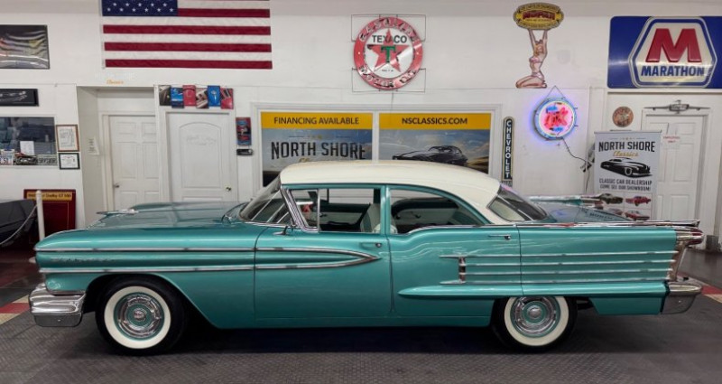 1958 Oldsmobile Eighty Eight, 44 068 miles, Green/White, Automatic, 371 C.I. Rocket engine, Power steering, Factory power brakes, Chrome and stainless trim, Clean floors and frame, Wide whitewall tires with original wheel covers.. Provenance : Illinois. Disponibilité : environ 7 semaines, clés en main. 31 000 € tout compris (importation, taxes, procédure d'immatriculation). Annonce publiée le 01/12/2025