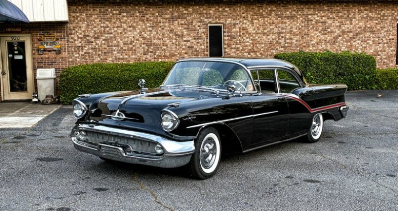 Cet Oldsmobile 98 Starfire de 1957 est équipé d'un moteur V8 Rocket J2 de 371 pouces cubes, doté d'une compression de 10:1 et de trois carburateurs à double barils, capable de produire 300 ch. La voiture était initialement équipée d'une transmission hydromatique, de chauffage/défrostrage, de direction assistée, de radio Wonder Bar Super Deluxe, d'antenne électrique, de gros feux arrière, de lave-glace, d'arrière-vue, d'horloge électrique, d'ajustement automatique des feux de position, de couvre-roues supérieures élégantes, de visières cadets et d'une planche de bord munie d'un tableau de bord recouvert de cuir. L'habitacle reste tout aussi original. Malgré les 4 portes, le design arrière et les fenêtres latérales portent l'apparence d'un coupé deux portes et garantissent un aspect classique. La voiture a été restaurée avec une nouvelle peinture, une révision complète de l'engine, une révision du groupe motopropulseur hydromatique et un nouvel amortisseur de frein de puissance installé. La voiture a été entreposée pendant 37 ans avant d'être réactivée pour être conduite à nouveau. Bien entretenue, elle a parcouru seulement 70 miles depuis l'année 1975. Les doublures de sièges en plastique ont été ajoutées lorsque la voiture était nouvelle. La voiture ne dispose pas de climatisation. Elle est dotée d'un loup de moteur typique de muscle car à l'arrêt et offre un plaisir inégalé lors de la conduite. Les freins ont été révisés à une époque antérieure et ne présentent pas de problème, mais ils ont tendance à perdre efficacité après quelques miles de conduite, ce qui suggère que de nouvelles lames de frein pourraient être nécessaires. Les papiers de la voiture comprennent des réceptes pour la peinture et la nettoyage, le revirement de la transmission hydromatique, le frein de puissance, quelques emblems remplacés et une multitude de réceptes de maintenance effectuées depuis plusieurs années.. Provenance : SC, USA. Disponibilité : 7 semaines, clés en main. 35 000 € tout compris (import, taxes, procédure d'immatriculation). Annonce publiée le 12/10/2025