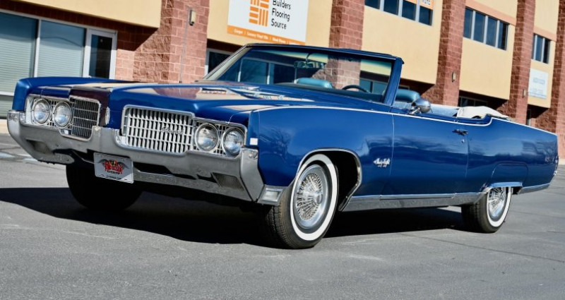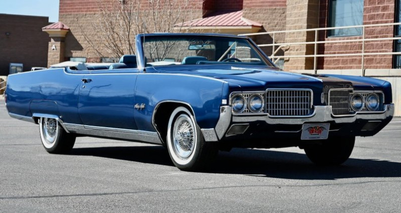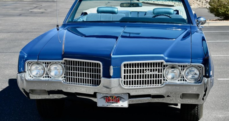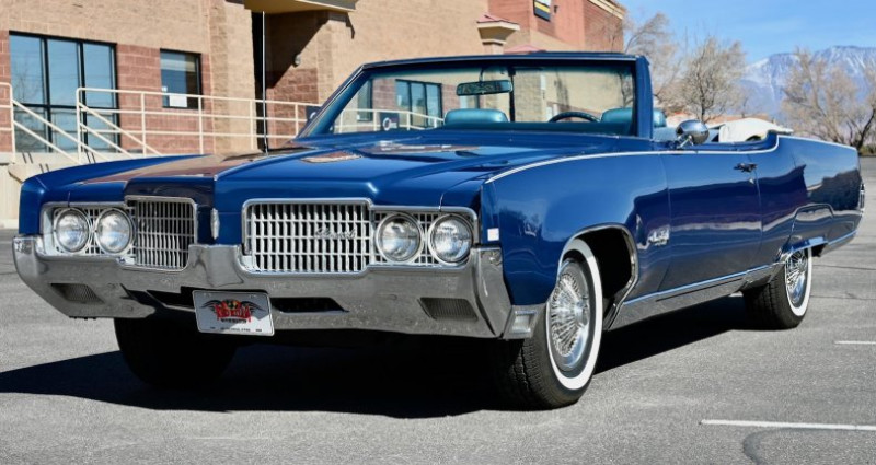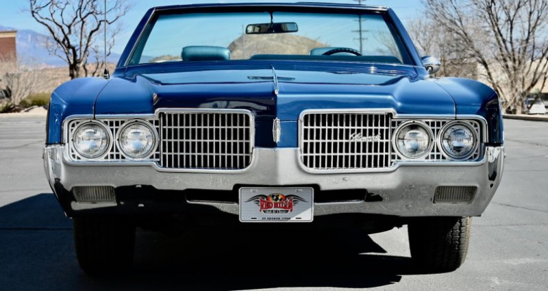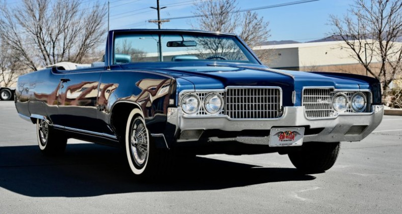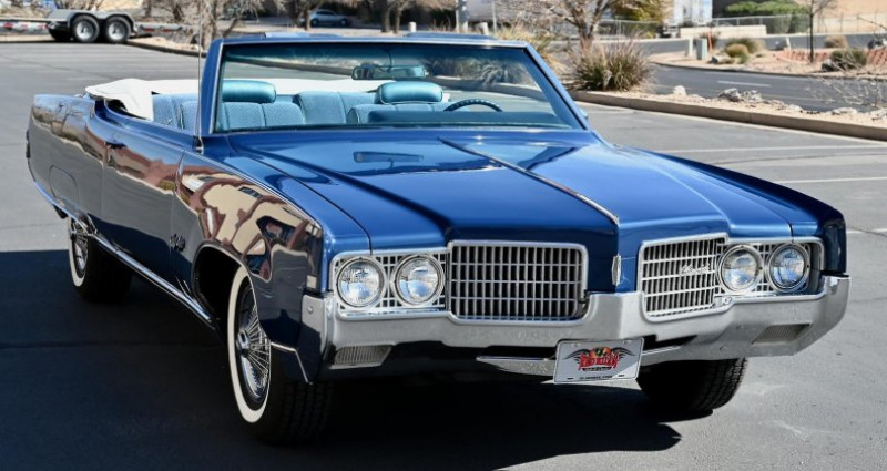 - Marque : Oldsmobile - Modèle : Ninety Eight - Année : 1969 - Type de carrosserie : Cabriolet - Couleur extérieure : Trophy Blue - Couleur intérieure : Blue - Transmission : Automatique - Moteur : 455 ci - Boîte de vitesses : TH400 - Équipements : Power steering, Power front disc brakes, Power convertible top, Power windows, 6-way power front bench seat, Tilt/telescopic steering column, AM/FM 8-Track stereo - État : Restauré - Kilométrage : 0 - Travaux récents : Multi-année restauration, réparation de la carrosserie, réparation du moteur, réparation de la transmission, réparation des freins, réparation des vitres, réparation des sièges, réparation de la direction, réparation de l'éclairage intérieur, réparation de l'éclairage extérieur, réparation de la radio 8-Track - État du véhicule : 100% rust-free (sans rouille). Provenance : Utah. Disponibilité : environ 7 semaines, clés en main. 37 500 € tout compris (importation, taxes, procédure d'immatriculation). Annonce publiée le 08/12/2025