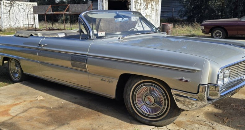 - Année : 1962 - Modèle : Oldsmobile 98 convertible - Moteur : 394 ci, sky rocket - Équipements : freins, direction, fenêtres, sièges, toit électriques - Couleur : Non spécifié - État : Restauré avant Covid, en stock depuis - Travaux récents : Nouveau chrome (bumpers, feux avant et arrière), peinture nouvelle, polissage professionnel de l'acier inoxydable, entretien - Intérieur : Beau - État général : Très bien règlé, ne nécessite rien à ce jour, peut-être des pneus plus récents - Vidéo de moteur en marche disponible si nécessaire. Provenance : California. Disponibilité : environ 7 semaines, clés en main. 33 000 € tout compris (importation, taxes, procédure d'immatriculation). Annonce publiée le 23/12/2025