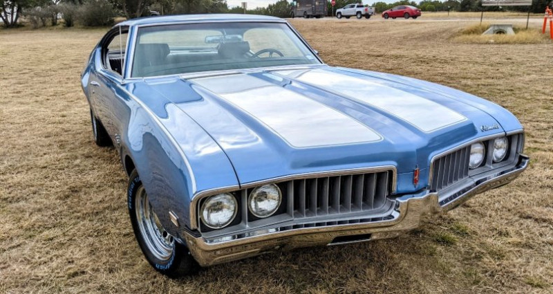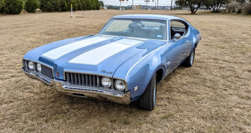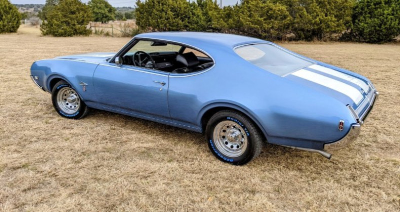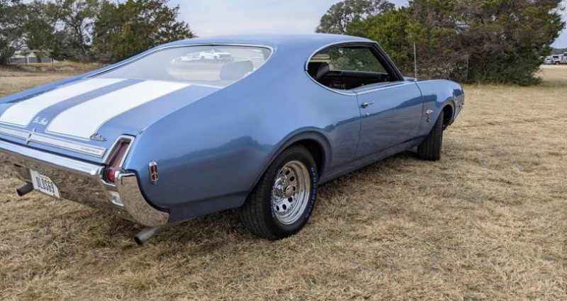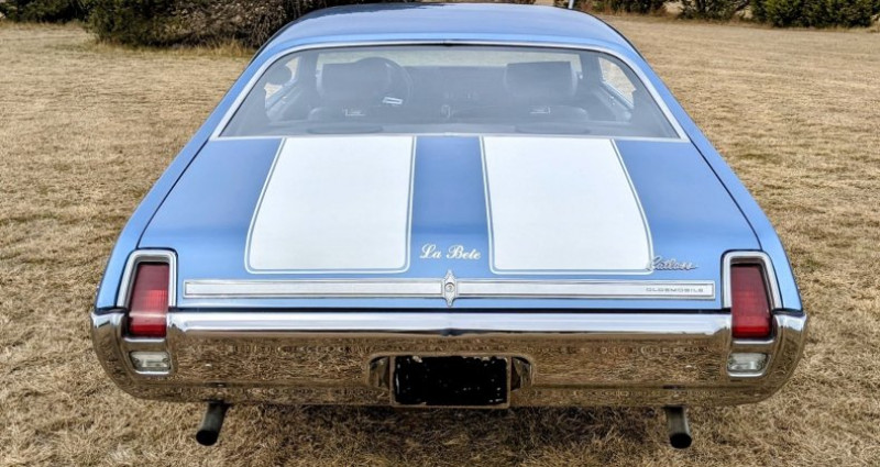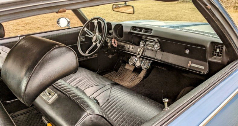 Cet exemplaire unique de 1969 Oldsmobile Cutlass S Holiday Coupe est en vente. Conservé dans un garage, il compte un peu plus de 9 000 miles d'origine non alterées. Le quatrième propriétaire actuel l'a possédé pendant cinq années. Si des informations sur le premier propriétaire qui l'a acquis neuf en 1969 sont disponibles. L'état général de ce Cutlass est exceptionnel, étant presque entièrement original, sans dommages à la carrosserie, ni collision ni rouille. Le chrome et le stainless ont une bonne conservation. Il est muni d'un moteur 350 Olds Rocket numériquement identique, ainsi qu'une transmission automatique ST 300. L'intérieur et la peinture ont été refaites en 1993, dans la couleur originale Nassau blue #53, y compris les bandes GT peintes et l'undercoating. Cette voiture est équipée de nombreuses améliorations et pièces neuves. Si vous avez besoin de photos spécifiques, ne dématez pas de vous en rapporter à moi. Je suis disposé à vous aider avec des entreprises de transport.. Ce descriptif est basé sur les éléments communiqués par le propriétaire avec un traitement assisté. Merci pour votre indulgence en cas de formulation perfectible. Provenance : Oregon. Disponibilité : 7 semaines, clés en main. 31 000 € tout compris (importation, taxes, procédure d'immatriculation). Annonce publiée le 14/10/2025