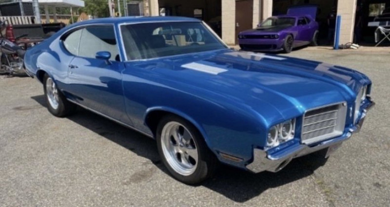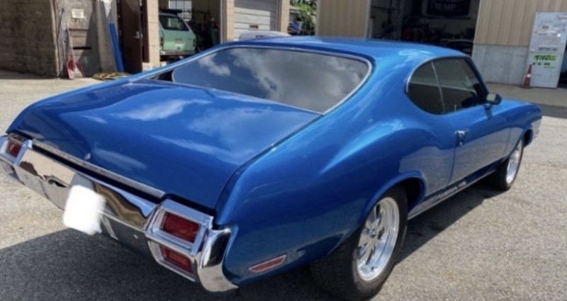 1971 Oldsmobile Cutlass S, fully customized, show-quality exterior finish, updated interior with premium stereo system, rebuilt Oldsmobile 350 Rocket V8 (approx. 355ci), smooth automatic transmission, rear-wheel drive (RWD), engine and drivetrain detailed with powder-coated and ceramic-coated components, upgraded accessories and performance enhancements throughout. Provenance : Massachusetts. Disponibilité : environ 7 semaines, clés en main. 72 500 € tout compris (importation, taxes, procédure d'immatriculation). Annonce publiée le 26/11/2025