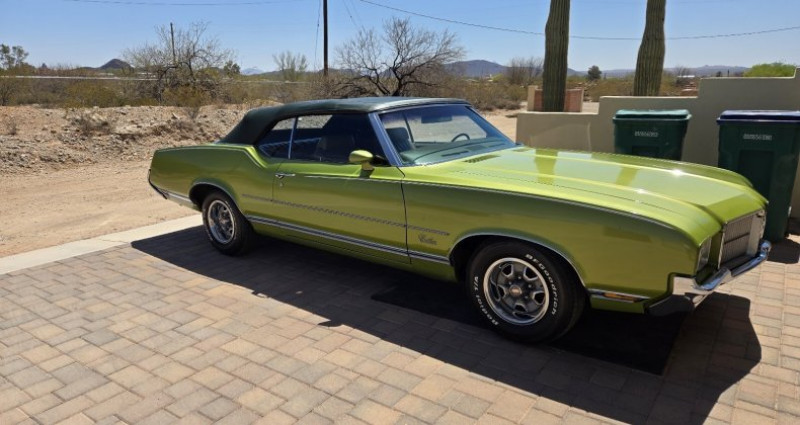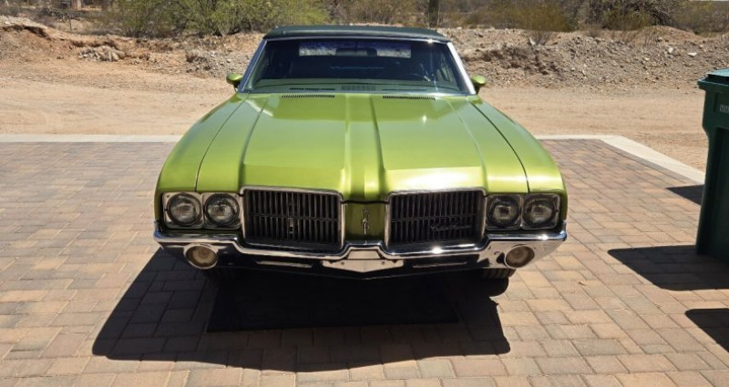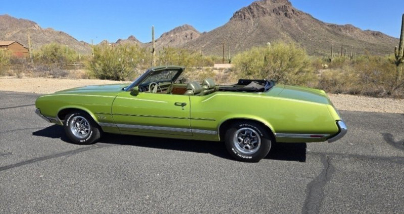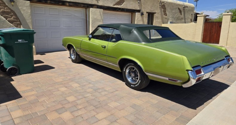 - Couleur extérieure : vert lime original - Toit convertible : vert lime original - Intérieur : vert lime original - Moteur : 350 Rocket V8 original - Boîte de vitesses : TH350 automatique avec levier de vitesses central et sièges baquets - Climatisation : originale - Kilométrage : moins de 71 000 miles - État général : très bien conservé, peu de travaux effectués - Pneus : BF Goodrich RWL neufs - Condition du véhicule : survivant intégralement original, sans rouille, avec des marques de graisse à l'aide de Protect-0-Plate et le manuel d'utilisateur original.. Provenance : Arizona. Disponibilité : environ 7 semaines, clés en main. 42 000 € tout compris (importation, taxes, procédure d'immatriculation). Annonce publiée le 08/12/2025