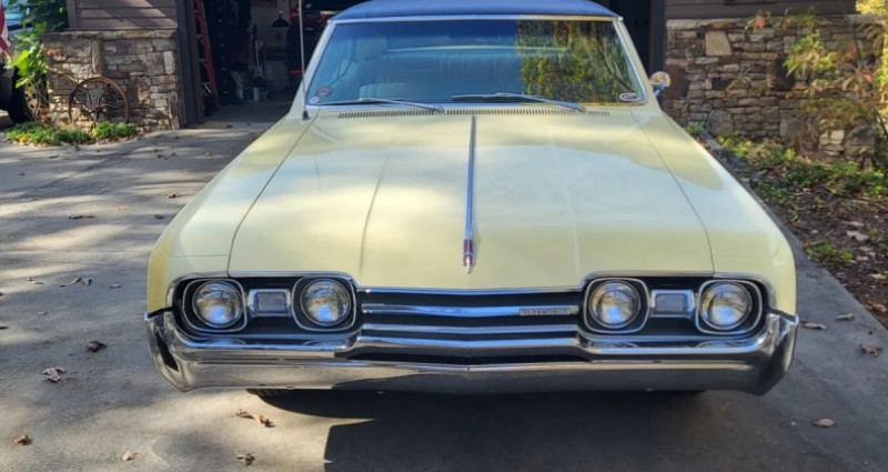 - Année : 1967 - Modèle : Cutlass Supreme Holiday Coupe - Couleur : Saffron Yellow avec toit noir en vinyle - Kilométrage : 87 352 miles - Moteur : V8 Jet Fire Rocket, 330 cid, 320 ch - Boîte de vitesses : automatique - Équipement : direction assistée (PS), freinage assisté (PB), direction pouvant être assistée (PW), climatisation, régulateur de vitesse - État : Excellent, solide, sans ruste - Intérieur : Intérieur immaculatement conservé, ainsi que le coffre - Moteur : Moteur propre, fonctionne et peut être conduit partout. Provenance : GA, USA. Disponibilité : environ 7 semaines, clés en main. 31 500 € tout compris (import, taxes, procédure d'immatriculation). Annonce publiée le 18/12/2025