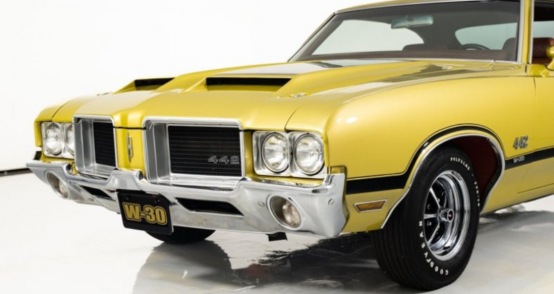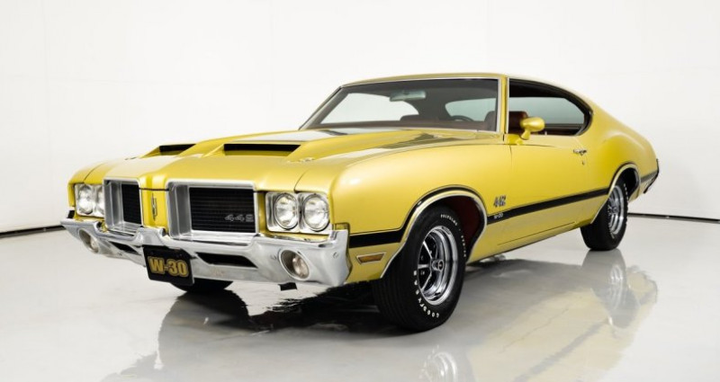 - Marque : Oldsmobile - Modèle : 442 - Année : 1971 - Version W-30 - Couleur extérieure : Saturn Gold - Couleur intérieure : Sienna - Type de carrosserie : Coupe - Transmission : Boîte manuelle 4-vitesse (M-22 Muncie) - Moteur : V8 455 C.I. - Kilométrage : 78 999 - VIN original : 344871M151712. Provenance : Missouri. Disponibilité : environ 7 semaines, clés en main. 87 500 € tout compris (importation, taxes, procédure d'immatriculation). Annonce publiée le 20/12/2025