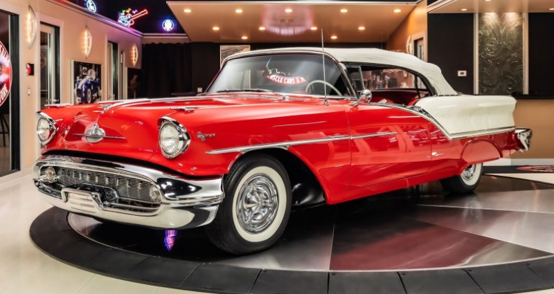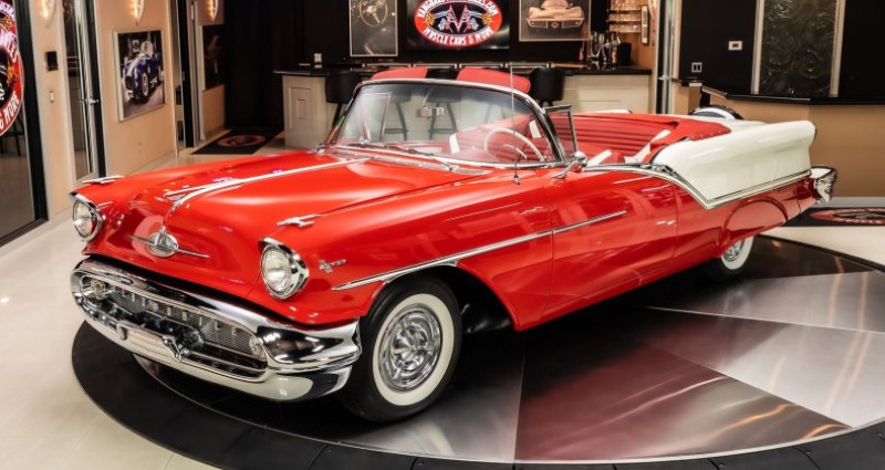 Cet Oldsmobile Super 88 Convertible de 1957 a été entièrement restauré avec une attention scrupuleuse, y compris une peinture émaillée glossée rouge avec un toit ouvrant blanc, des chromeques et des jantes avec roues en caoutchouc blanc. Le moteur est un J2 371ci Tri Power V8, et la transmission est une transmission automatique hydromatique à trois vitesses. Il dispose également d'un système de climatisation après-marché, de freins et de direction assistés, ainsi qu'un accoudoir arrière divisible en deux pour faciliter l'accès au siège arrière. Sous le capot se trouve une transmission ouverte de style usine avec un rapport d'engrenage de 3, 43:1. La partie inférieure comprend un sol recouvert de liner en matériau noir peint et une coque et des parties inférieures de la carrosserie colorées dans la même tonalité que la carrosserie. L'intérieur de l'automobile est fabuleux : il y a des banquettes doubles en cuir rouge avec un siège avant divisible et un coffre de toit rouge. L'automobile dispose également d'un tableau de bord et de clignotants de style usine, d'un tableau de bord monté sur tableau de bord, d'un volant de style usine, et d'un émetteur/récepteur radio. Cet Oldsmobile est un exemple remarquable de classicisme timeless et ferait certainement un excellent ajout à n'importe quelle collection.. Ce descriptif est basé sur les éléments communiqués par le propriétaire avec un traitement assisté. Merci pour votre indulgence en cas de formulation perfectible. Provenance : Michigan. Disponibilité : 7 semaines, clés en main. 136 500 € tout compris (importation, taxes, procédure d'immatriculation). Annonce publiée le 17/10/2025