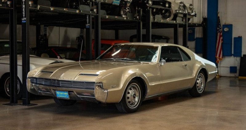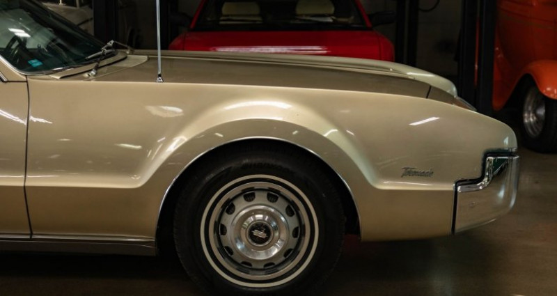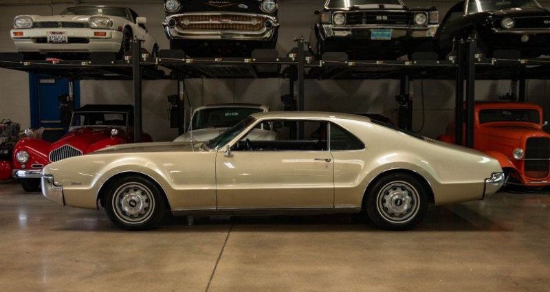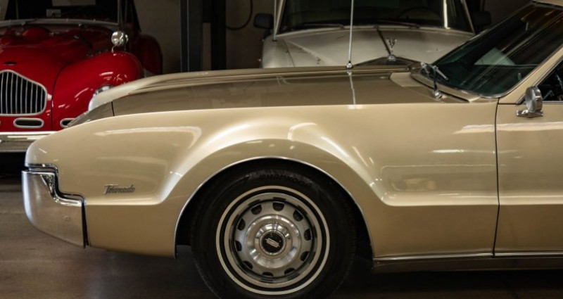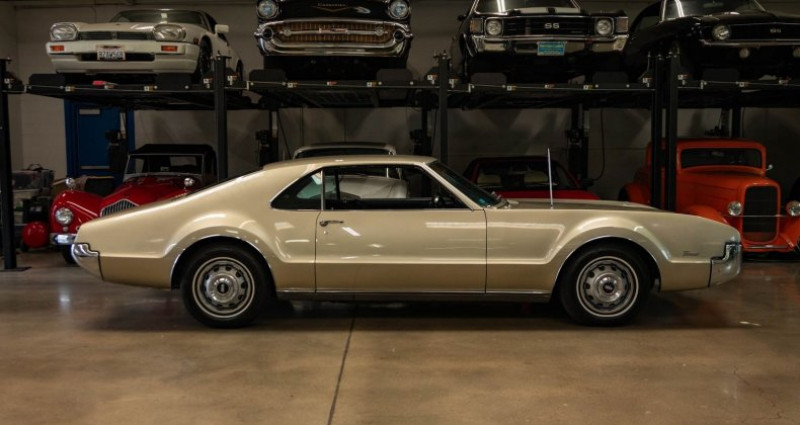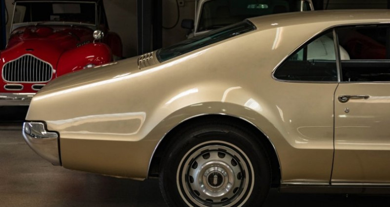 Ce véhicule est un Oldsmobile Toronado Deluxe datant de 1966 et possède un moteur V8 de 425 ci développant une puissance de 385 ch. Il s'agit d'une version originale et correcte, conservant sa peinture originale Champagne Mist Poly (code de peinture S) et sa banquette Strato en cuir noir. Le véhicule est équipé d'options telles que l'air conditionné, la direction assistée et les freins assistés. L'intérieur est également équipé d'un volant délestable, d'un système de climatisation et d'un frein de stationnement automatique. Les roues et les jantes d'origine sont également présentes. Le moteur fonctionne bien et la transmission automatique change sans problème à travers toutes les vitesses. Le température de refroidissement reste toujours stable.Ce Toronado est une rare et très désirable exemplaire d'un des musclés cars des années 60, appréciée par les collectionneurs de voitures de collection américaines et en particulier par les amoureux d'Oldsmobile. Son design extérieur est unique avec des jupes avant imposantes, des phares cachés, des arches de roues musclées et une ligne de toit rapide.En 1966, Oldsmobile a créé la nouvelle avec l'introduction du Toronado, qui combine un style intrigant et luxueux avec des performances sportives remarquables et qui était le premier véhicule à propulsion avant depuis les années 30. Il a été un des Oldsmobiles les plus désirés jamais produits.En raison de son ingénierie exceptionnelle, de ses performances et de sa technologie unique, le Toronado a reçu le prestigieux titre de 'Motor Trend' magazine 'Voiture de l'année' de 1966. Les publicités de la marque Oldsmobile ont comparé tous ses modèles à celui-ci en 1967. Il a reçu seulement des restylages modestes en 1967, avec la seule modification majeure visuelle consistant à l'alignement des ailes rondes autour de l'ouverture des phares, ce qui a fait que les Toronado de première génération sont maintenant considérés comme des pièces de monnaie.Cette Toronado Deluxe est en excellente condition général et ses roues d'origine sont toujours en place. Il a une carte grise originale de Californie.. Ce descriptif est basé sur les éléments communiqués par le propriétaire avec un traitement assisté. Merci pour votre indulgence en cas de formulation perfectible. Provenance : California. Disponibilité : 7 semaines, clés en main. 30 500 € tout compris (importation, taxes, procédure d'immatriculation). Annonce publiée le 16/10/2025