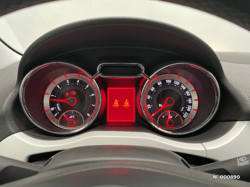Ceintures de sécurité 3 points à enrouleur AV et AR / Cerclages d'aération chromés / Affichage digital de la vitesse / Clé personnalisée / Inserts de poignées portes / Instrumentation de bord avec cerclages chromés rétro-éclairés / IntelliLink: Système multimédia tactile 6.95" avec fonction Bluetooth, utilisation des applications du SmartPhone, Aux-In audio et vidéo, prise USB, pilotage iPhone et iPod / Jantes alliage 16" "Vintage" Argent / Jauge à carburant avec alerte mini / Kit anti-crevaison / Klaxon simple ton / Klaxon 1 ton / Ligne de toit chromée / Ligne de vitrage chromée / Mode CITY avec bouton d'activation / désactivation (manoeuvre facile) / Mode City (manoeuvre facile) / OnStar: Assistant de connectivité et de service personnel / OnStar avec point d'accès Wi-Fi 4G : votre assistant personnel pour la connectivité et les services / Pack Design VIP / Phares AV halogènes avec feux de jour / Poches aumonières au dos des sièges AV / Poignée de maintien pour passager AV / Poignées de maintien passager AV / Poignées de portes avec inserts chromés / Poignées de portes, toit et coques supérieure des rétroviseurs extérieur couleur carrosserie / Porte-gobelet AV / Porte-gobelets sur la console centrale / Porte-gobelets sur la console centrale / Rappel de bouclage de ceinture conducteur et passager AV / Régulateur et limiteur de vitesse programmable / Volant 3 branches / Volant 3 branches gainé cuir avec éléments de décoration et commandes au volant / 3ème feu stop / 6 HP / 7HP / Airbag passager déconnectable par interrupteur depuis la console centrale avec témoin sur tableau de bord / Dossier de banquette AR rabattable en 2 parties 50/50 / Essuie-glaces AV électriques (3 vitesses dont 1 intermittente) / Extinction differée des phares "Porte-à -porte" / Feu AR de brouillard et feu de recul / R4.0 IntelliLink écran tactile 7" avec radio, USB, Apple CarPlay, Android Auto, Bluetooth, streaming audio et 6HP / Seuils de portes Opel / Sièges AV réglables en 4 directions / Sièges latéraux AR compatibles ISOFIX / Système antiblocage des roues (ABS électronique) / Système d'alerte de sous-gonflage des pneumatiques / Système de pédalier rétractable en cas de choc frontal (PRS) / Système de recirculation d'air et filtre anti-pollen / Système d'entrée facile aux places AR avec mémorisation de la position des sièges AV / Essuie-glaces AV à 3 vitesses dont 1 intermittente / Système "Easy Entry" pour un accès facilité aux places AR avec fonction mémoire / Tunnel central avec porte-gobelets / Verrou électronique Opel (antidémarrage) / Vitres AV électriques avec fonction anti-pincement / Clé rétractable avec télécommande intégrée et personnalisée couleur carosserie / Commande des clignotants et des essuie-glaces par impulsion / Compteur kilométrique et totalisateur journalier à affichage digital / Console centrale AR avec 2 porte-gobelets / Console centrale avec porte-gobelets / Contrôle de freinage en courbe CBC / Contrôle de traction électronique (TCS) / Contrôle électronique de trajectoire ESP avec aide au démarrage en côte / Crochet dans le coffre / Airbags passager déconnectable par interrupteur depuis la console centrale avec témoin sur tableau de bord / Alarme sonore d'oubli d'extinction des feux / Alerte de sous-gonflage des pneumatiques / Appuis-tête sur sièges latéraux AR / Avertisseur simple ton / Bouton d'activation/désactivation du mode CITY (manoeuvre facile) / Bouton de désactivation de l'airbags passager / Cache-bagages rigide / Calandre chromée avec grille noire / Calandre chromée/noir