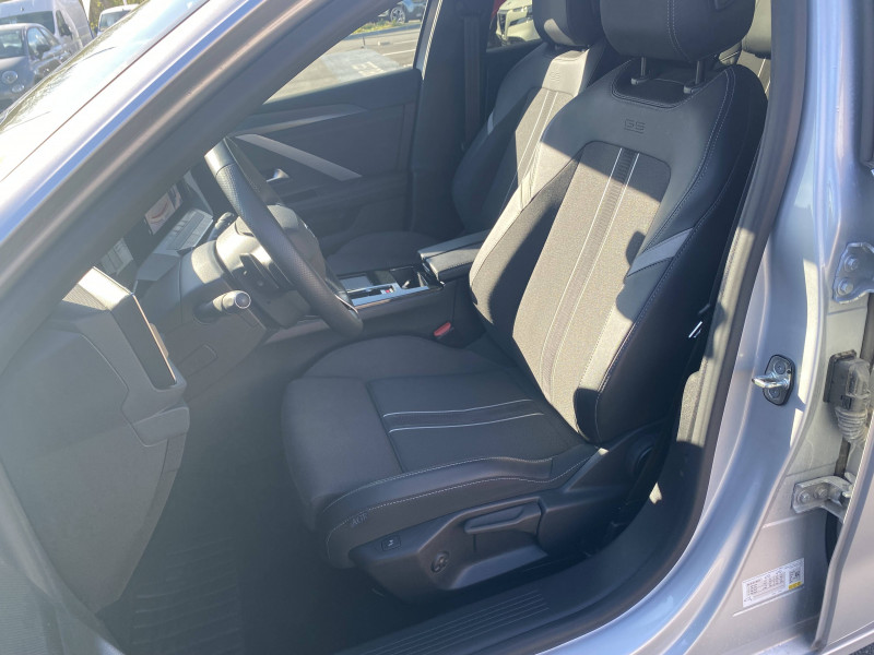 1 USB C (données), 2 USB (chargeur) / 2 clés à plip / 2 pare-soleil avec miroir de courtoisie éclairé par LED / 6 HP / Alerte de sous-gonflage des pneumatiques / Banquette AR 40/60 / Black pack extrieur "GS" / Chargeur embarqué 3,7 kW / Ciel de toit noir / Eclairage d'ambiance dans les portes AV avec 8 couleurs sélectionnables / Eclairage de coffre à LED / Entrée et démarrage sans clé (portes, coffre, trappe à carburant) / Filtre à pollen, odeurs et particules fines / Freinage en cas de collision / Freins à disques AV et AR / Intelli-vision panoramique à 360° avec 4 caméras / Jantes alliage 17" Admiral - Diamanté / Kit anti-crevaison / Module Opel Connect / Multimedia Radio Pure Panel Pro Dalle en verre intégrale, Ecran d'instrumentation digitale de 10,'' Ecran tactile central de 10'' / Pack Drive Assist / Pare-brise feuilleté acoustique / Pédalier Sport type Aluminium / Phares Eco LED / Plafonniers à LED AV et AR / Plancher de coffre fixe / Pré-disposition crochet de remorquage / Prise 12V sur la console centrale AV / Rétroviseur intérieur électrochrome Frameless / Rétroviseurs extérieurs avec fonction mémorisation / Sellerie Tissu / TEP effet cuir Greta Siège cond. AGR Sièges AV chauffant / Siège conducteur certifié AGR réglable en 10 positions avec coussin d'assise réglable en longueur et soutien lombaire réglable électriquement en 4 positions / Trappe à Ski avec accoudoir central et porte-gobelets / Vitres AV et AR électriques à ouverture séquentielle, anti-pincement / Vitres latérales feuilletées acoustiques / Volant chauffant