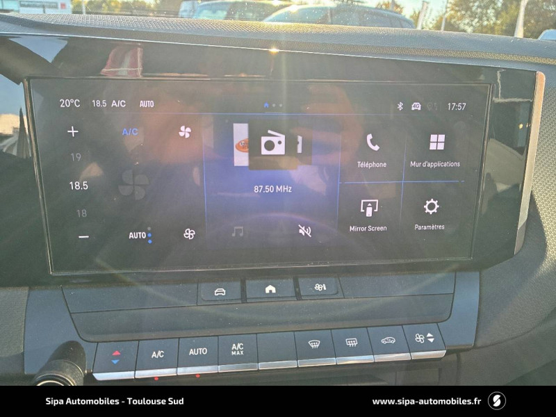1 USB C (données), 1 USB (chargeur) / 2 clés à plip / 2 pare-soleil avec miroir de courtoisie éclairé par LED / 6 HP / Alerte de sous-gonflage des pneumatiques / Banquette AR 40/60 / Coques de rétroviseurs noirs / Eclairage de coffre à LED / Filtre à pollen, odeurs et particules fines / Freinage en cas de collision / Freins à disques AV et AR / Jantes alliage 16" Phantom, Argent Pneus 205/55 R16 / Kit anti-crevaison / Ligne de vitrage inférieure noire / Module Opel Connect / Multimedia Radio Pure Panel Ecran d'instrumentation digitale de 10'', Ecran tactile central de 10', Apple CarPlay ou Android Auto sans fil / Pack Drive Assist / Pack pare-choc '"EDITION" / Pack Sécurité Opel / Pare-brise feuilleté acoustique / Phares Eco LED / Plafonniers à LED AV et AR / Plancher de coffre fixe / Pré-disposition crochet de remorquage / Prise 12 V sur la console centrale AV / Radio FM/AM/DAB+ / Siège conducteur réglable manuellement dans 6 directions / Siège passager AV réglable manuellement dans 6 directions / Vitres AV et AR électriques à ouverture séquentielle, anti-pincement / Volant TEP Végan