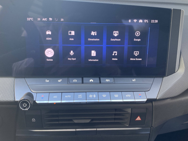 2 pare-soleil avec miroir de courtoisie éclairé par LED / Aide au stationnement AV et AR + Caméra de recul 180° / Contrôle électronique de stabilité (ESP) avec aide au démarrage en côte / Eclairage de coffre à LED / Jantes alliage 17" Admiral, Noir Onyx Diamantées / Multimedia Navigation Pure Panel Pro / Pack Drive Assist / Phares Eco LED / Plafonniers à LED AV et AR / 2 clés à plip / 6 HP / Banquette AR 40/60 / Chargeur embarqué 3 kW / Eclairage d'ambiance dans les portes AV avec 8 couleurs sélectionnables / Entrée et démarrage sans clé (portes, coffre, trappe à carburant) / Freinage en cas de collision / Intelli-air avec détecteur "Air Quality" / Kit anti-crevaison / Ligne de vitrage inférieure noire / Module Opel Connect / Pare-brise feuilleté acoustique / Plancher de coffre fixe / Prise 12V sur la console centrale AV / Pré-disposition crochet de remorquage / Rétroviseur intérieur électrochrome Frameless / Rétroviseurs extérieurs électriques rabattables électriquement, coque noire grainée et éclairage d'accueil / Siège conducteur certifié AGR réglable en 10 positions avec coussin d'assise réglable en longueur et soutien lombaire réglable électriquement en 4 positions / Siège passager réglable dans 6 directions / Trappe à Ski avec accoudoir central et porte-gobelets / Typage moteur dynamique / Vitres AV et AR électriques à ouverture séquentielle, anti-pincement / Vitres latérales feuilletées acoustiques / Volant chauffant