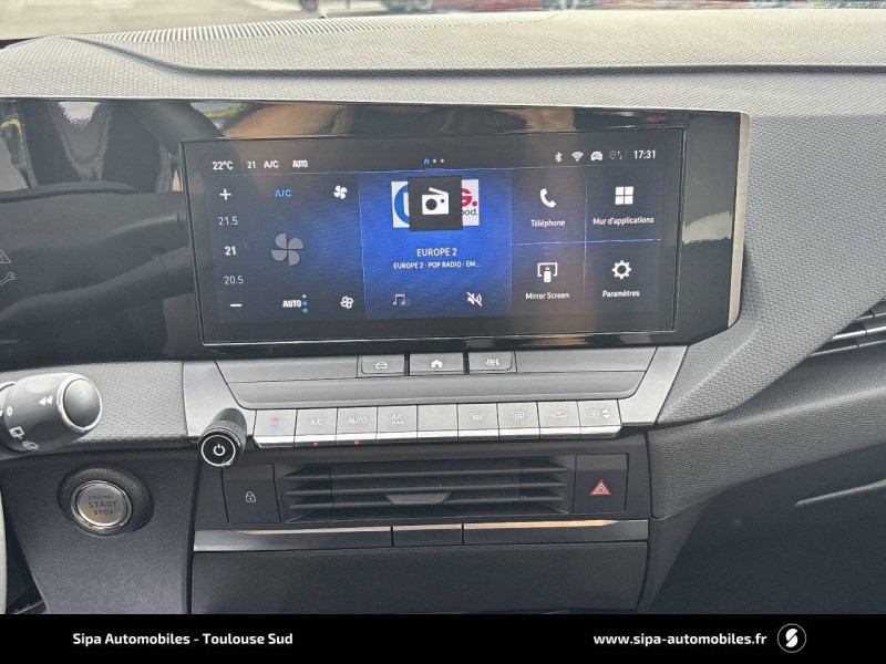 1 USB C (données), 1 USB (chargeur) / 2 clés à plip / 2 pare-soleil avec miroir de courtoisie éclairé par LED / 6 HP / Alerte de sous-gonflage des pneumatiques / Banquette AR 40/60 / Coques de rétroviseurs noirs / Eclairage de coffre à LED / Filtre à pollen, odeurs et particules fines / Freinage en cas de collision / Freins à disques AV et AR / Jantes alliage 16" Phantom, Argent Pneus 205/55 R16 / Kit anti-crevaison / Ligne de vitrage inférieure noire / Module Opel Connect / Multimedia Radio Pure Panel Ecran d'instrumentation digitale de 10'', Ecran tactile central de 10', Apple CarPlay ou Android Auto sans fil / Pack Drive Assist / Pack pare-choc '"EDITION" / Pack Sécurité Opel / Pare-brise feuilleté acoustique / Phares Eco LED / Plafonniers à LED AV et AR / Plancher de coffre fixe / Pré-disposition crochet de remorquage / Prise 12 V sur la console centrale AV / Radio FM/AM/DAB+ / Siège conducteur réglable manuellement dans 6 directions / Siège passager AV réglable manuellement dans 6 directions / Vitres AV et AR électriques à ouverture séquentielle, anti-pincement / Volant TEP Végan