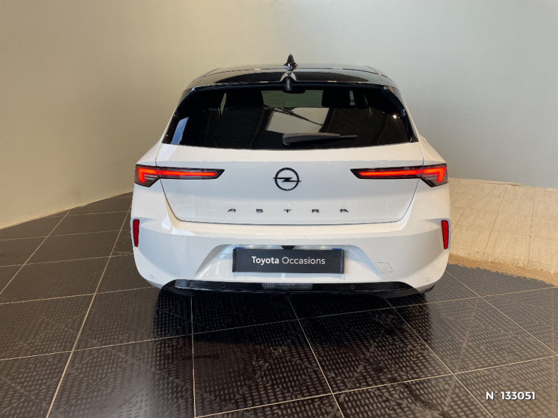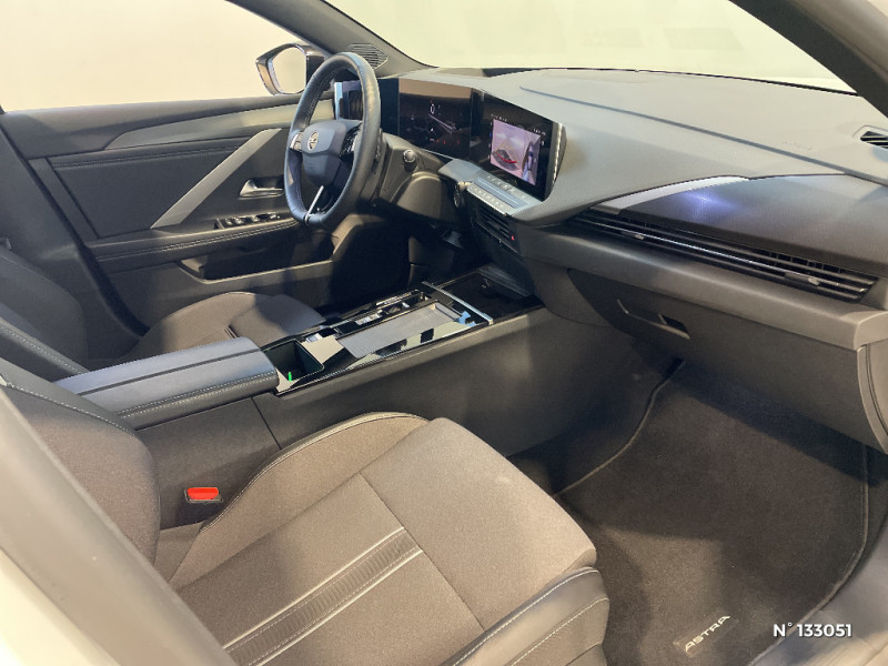 Eclairage d'ambiance dans les portes AV avec 8 couleurs sélectionnables / Eclairage d'ambiance (8 couleurs) à l'AV / Eclairage de coffre à LED / Entrée et démarrage sans clé (portes, coffre, trappe à carburant) / Filtre à pollen, odeurs et particules fines / Black pack extrieur "GS" / Ciel de toit noir / Airbags frontaux et latéraux conducteur et passager AV, rideaux (6 airbags) / Alerte de sous-gonflage des pneumatiques / Banquette AR 40/60 / Black pack extérieur "GS" - Pare-choc AV sportif - Pare-chocs AV et AR- Noir - Logo "Opel" et lettrage "Astra" Noir - Ligne de vitrage Noir - Vitres AR surteintées / Freinage en cas de collision / Freins à disques AV et AR / Intelli-air avec détecteur "Air Quality" / Intelli-vision panoramique à 360° avec 4 caméras / Jantes alliage 17" Admiral - Diamanté / Jantes alliage 17" Admiral - Diamanté Pneus 225/45 R17 / Jantes alliage 17" Kadet, Noir Onyx / Kit anti-crevaison / Module Opel Connect / Module Opel Connect Appel d'urgence, Appel en cas de panne, Informations véhicule, Services connectés via WIFI domestique / Multimedia Radio Pure Panel Pro Dalle en verre intégrale, Ecran d'instrumentation digitale de 10,'' Ecran tactile central de 10'' / Pack Drive Assist / Pack Drive Assist - Avertisseur de changement de voie intempestif avec impulsion sur le volant en cas de déport - Freinage automatique d'urgence avec radar - Reconnaissance des panneaux de signalisation - Alerte de vigilance conducteur améliorée - Régulateur de vitesse adaptatif ACC Stop & Go / Pack Sécurité Opel / Pack Sellerie Tissu / TEP Greta - Siège conducteur certifié AGR réglable en 10 directions avec coussin d'assise réglable en longueur et soutien lombaire réglable électriquement en 4 positions - Siège passager réglable manuellement dans 6 directions - Appui-têtes réglables dans 4 directions - Sièges AV chauffants - Volant chauffant / Pare-brise feuilleté acoustique / Pédalier Aluminium / Pédalier Sport type Aluminium / Peinture opaque / Phares Eco LED / Phares Eco LED - Allumage automatique des feux - Commutation automatique des feux de route - Feux de jour, clignotants AR et feux AR LED / Plafonniers à LED AV et AR / Plancher de coffre 2 positions (FlexLoad) / Porte-gobelet AV / Pré-disposition crochet de remorquage / Prise 12 V sur la console centrale AV / Radio FM/AM/DAB+ / Rétroviseur intérieur électrochrome Frameless / Rétroviseurs extérieurs avec fonction mémorisation / Rétroviseurs extérieurs électriques rabattables électriquement, coque noire grainée et éclairage d'accueil / Sellerie Tissu / TEP effet cuir Greta Siège cond. AGR Sièges AV chauffant / Sellerie Tissu / TEP Greta Siège cond. AGR Sièges AV chauffant / Siège conducteur certifié AGR réglable en 10 positions avec coussin d'assise réglable en longueur et soutien lombaire réglable électriquement en 4 positions / Siège passager AV réglable manuellement dans 6 directions / Siège passager réglable dans 6 directions / Siège passager réglables manuellement dans 6 directions / Toit Noir Karbon / Toit Noir Karbon / Trappe à Ski avec accoudoir central et porte-gobelets / Trappe à skis / Typage moteur dynamique / Vitres AV et AR électriques à ouverture séquentielle, anti-pincement / Vitres latérales feuilletées acoustiques / Volant chauffant / 1 USB C (données), 1 USB (chargeur) / 1 USB C (données), 2 USB (chargeur) / 2 clés à plip / 2 pare-soleil avec miroir de courtoisie éclairé par LED / 6 HP / Contrôle électronique de stabilité (ESP) avec aide au démarrage en côte / Coques de rétroviseurs noirs