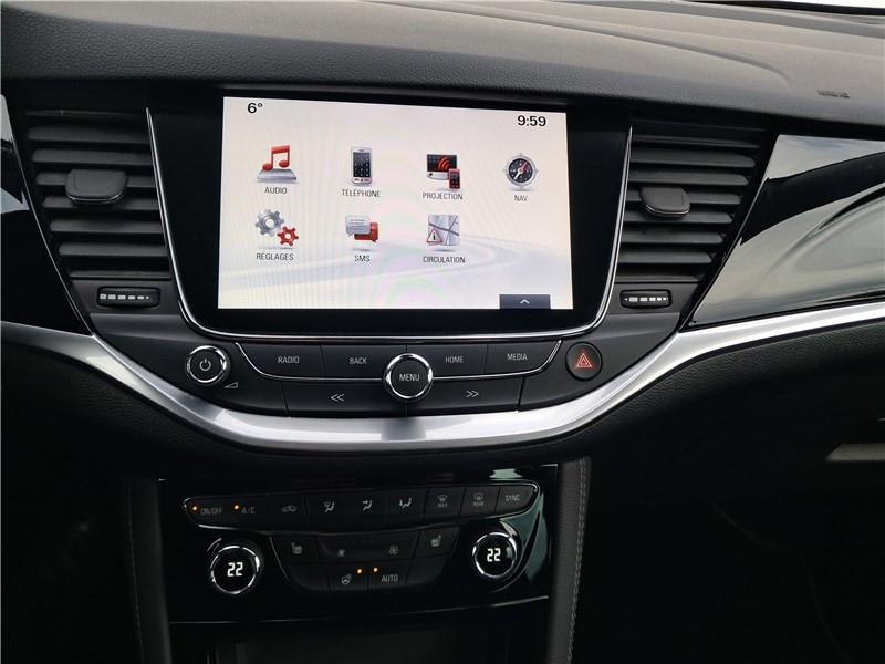 5 ceintures de sécurité 3 points à enrouleur AV et AR (réglables en hauteur à l'AV) / 6 HP / Barre de calandre chromée / Caméra de recul avec lignes de guidage / Caméra de recul avec lignes de guidage sur l'écran multimédia / Caméra Opel Eye / Clé Opel mains-libres ouverture et démarrage sans clé / Climatisation automatique bi-zone avec filtre à charbon et détecteur de qualité d'air / Console centrale et bandeaux de décor sur planche de bord et contre-portes "Piano Black" / Contrôle électronique de stabilité (ESP+) avec aide au démarrage en côté : intégrant le contrôle de / Coque de rétroviseurs extérieurs noires / Dossier de banquette AR rabattable asymétriquement 2/3 - 1/3 / Eléments de décoration intérieure "Piano Black" / Feux de jour et clignotants AV LED / Frein à main électrique / Jantes alliage léger 17" 10 branches avec pneus 225/45 R17 / Kit anti-crevaison / Ligne de vitrage chromée / Lumière d'ambiance / Navi 900 IntelliLink : Ecran tactile 8'' avec cartographie Europe 3D, prise USB, interface iPod, / Navi 900 IntelliLink : Ecran tactile 8'' avec cartographie Europe 3D, prise USB, interface iPod, / Navi 900 IntelliLink : Ecran tactile 8'' avec cartographie Europe 3D, prise USB, interface iPod, / Pack Flexibilité / Pack Hiver II / Pack Visibilité / Pédalier rétractable en cas de choc frontal (PRS) / Poches aumonières au dos des sièges AV / Poignées de portes couleur carrosserie / Régulateur et limiteur de vitesse programmable / Rétroviseurs extérieurs électriques et dégivrants de couleur noire / Seuils de portes AV anodisés / Siège conducteur ergonomique certifié AGR, réglable dans 8 directions avec réglage lombaire / Siège passager réglable en hauteur et soutien pour les cuisses / Sièges AV "Confort" / Spots de lecture AR / Spots de lecture AV / Système antiblocage des roues (ABS électronique) avec Répartition électronique du freinage (EBD) / Toit noir / Verrouillage centralisé (portes, coffre et trappe à carburant) à télécommande