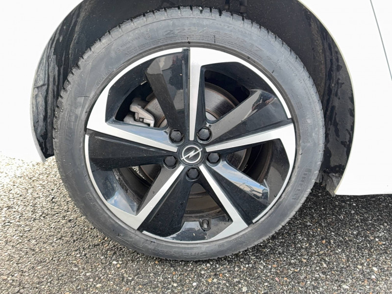 2 clés à plip / 2 pare-soleil avec miroir de courtoisie éclairé par LED / 6 HP / Banquette AR 40/60 / Chargeur embarqué 3 kW / Climatisation automatique mono-zone, avec filtre à pollen, odeurs et particules fines / Contrôle électronique de stabilité (ESP) avec aide au démarrage en côte / Eclairage de coffre à LED / Freinage en cas de collision / Jantes alliage 17" Kadet, Noir Onyx Diamantées / Kit anti-crevaison / Ligne de vitrage inférieure noire / Module Opel Connect / Multimedia Radio Pure Panel Ecran d'instrumentation digitale de 10'', Ecran tactile central de 10', Apple CarPlay ou Android Auto sans fil / Pack Drive Assist / Pare-brise feuilleté acoustique / Phares Eco LED / Plafonniers à LED AV et AR / Pré-disposition crochet de remorquage / Prise 12 V sur la console centrale AV / Rétroviseur intérieur électrochrome Frameless / Rétroviseurs extérieurs électriques, chauffants, rabattables manuellement, coque noire grainée / Sièges AV réglables manuellement dans 6 directions (longueur / hauteur / dossier) / Typage moteur dynamique / Vitres AV et AR électriques à ouverture séquentielle, anti-pincement