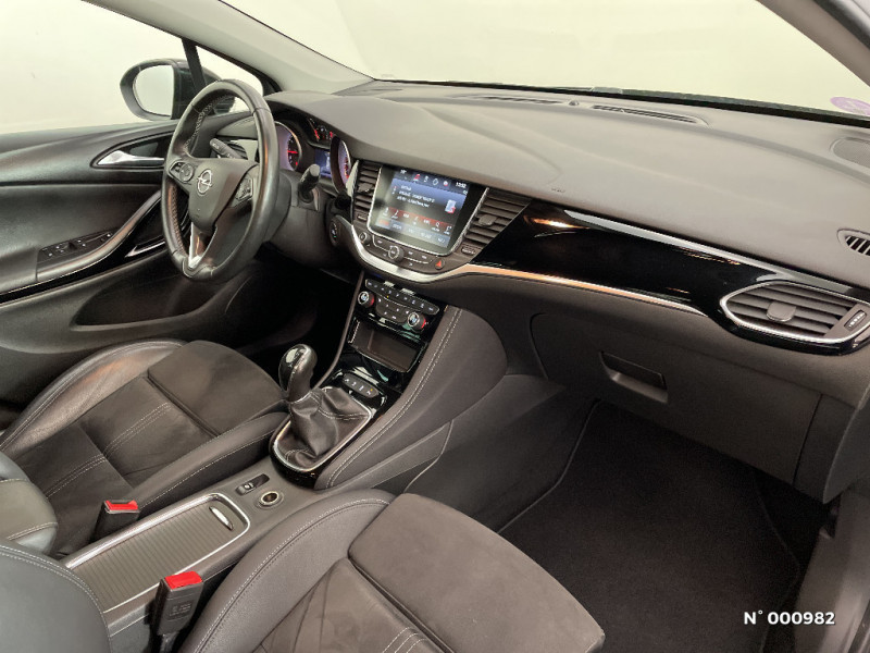 Barre de calandre chromée / Caméra de recul avec lignes de guidage / Caméra de recul avec lignes de guidage sur l'écran multimédia / Caméra Opel Eye / Clé Opel mains-libres ouverture et démarrage sans clé / Climatisation automatique bi-zone avec filtre à charbon et détecteur de qualité d'air / Console centrale et bandeaux de décor sur planche de bord et contre-portes "Piano Black" / 6 HP / Contrôle électronique de stabilité (ESP+) avec aide au démarrage en côté : intégrant le contrôle de traction (TC), le contrôle de freinage en courbe (CBC), le contrôle de couple en courbe (CTC), l'assistance au freinage d'urgence (BAS) / Coque de rétroviseurs extérieurs noires / Dossier de banquette AR rabattable asymétriquement 2/3 - 1/3 / Eléments de décoration intérieure "Piano Black" / Feux de jour et clignotants AV LED / Frein à main électrique / Jantes alliage léger 17" 10 branches avec pneus 225/45 R17 / Kit anti-crevaison / Ligne de vitrage chromée / Lumière d'ambiance / Navi 900 IntelliLink : Ecran tactile 8'' avec cartographie Europe 3D, prise USB, interface iPod, Bluetooth, audio streaming, reconnaissance vocale, écran de l'instrumentation de bord couleur 4,2'' sur Innovation et Black Edition. Compatible Apple CarPlay et Android Auto. / Navi 900 IntelliLink : Ecran tactile 8'' avec cartographie Europe 3D, prise USB, interface iPod, Bluetooth, audio streaming, reconnaissance vocale, écran de l'instrumentation de bord couleur 4,2'' sur Innovation et Black Edition. Compatible Apple CarPlay et Android Auto. 2 HP / Navi 900 IntelliLink : Ecran tactile 8'' avec cartographie Europe 3D, prise USB, interface iPod, Bluetooth, audio streaming, reconnaissance vocale, écran de l'instrumentation de bord couleur 4,2'' sur Innovation et Black Edition. Compatible Apple CarPlay et Android Auto. 2 HP / Pack Flexibilité / Pack Hiver II / Pack Visibilité / Pédalier rétractable en cas de choc frontal (PRS) / Poches aumonières au dos des sièges AV / Poignées de portes couleur carrosserie / Régulateur et limiteur de vitesse programmable / Rétroviseurs extérieurs électriques et dégivrants de couleur noire / Seuils de portes AV anodisés / Siège conducteur ergonomique certifié AGR, réglable dans 8 directions avec réglage lombaire électrique et soutien pour les cuisses. / Siège passager réglable en hauteur et soutien pour les cuisses / Sièges AV "Confort" / Spots de lecture AR / Spots de lecture AV / Système antiblocage des roues (ABS électronique) avec Répartition électronique du freinage (EBD) / Toit noir / Verrouillage centralisé (portes, coffre et trappe à carburant) à télécommande / 5 ceintures de sécurité 3 points à enrouleur AV et AR (réglables en hauteur à l'AV)