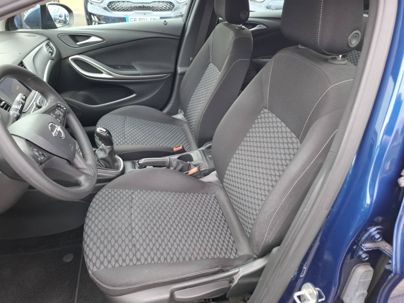 5 ceintures de sécurité 3 points à enrouleur AV et AR / Airbags Opel conducteur et passager, latéraux sur sièges AV, airbags de toit et rideaux AV et AR / Châssis Ecoflex / Climatisation manuelle avec filtre à charbon actif / Contrôle électronique de trajectoire ESP avec aide au démarrage en côte / Dossier de banquette AR rabattable asymétriquement 40/60 avec 3 appuis-tête et fixation ISOFIX / Eclairage AV, AR et éclairage du coffre / Feux de jour et clignotants AV LED / Kit anti-crevaison / Lumière d'ambiance / Multimédia : Ecran tactile 7'' avec radio, USB, compatible Apple CarPlay et Android Auto, Bluetooth main libres, audio streaming, commande vocale du télephone, système son 6 HP et Antenne Courte / Multimedia Navi : Ecran tactile 7'' avec cartographie Europe 3D, prise USB, Bluetooth, audio streaming, utilisation de certaines application du Smartphone, Compatible Apple CarPlay et Android Auto. 6 HP / MyEco - assistant de conduite / Pack Ambiance / Pack Visibilité / Poignées de portes couleur carrosserie / Prise 12 V sur la console centrale AV / Rétroviseur intérieur électrochromatique / Rétroviseurs extérieurs électriques et dégivrants de couleur noire / Spots de lecture AV LED / AR / Système antiblocage des roues (ABS électronique) / Verrouillage centralisé (portes, coffre et trappe à carburant) à télécommande