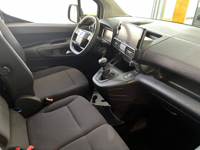 6 anneaux d'arrimage dans l'espace de chargement / Capucine / Cloison pleine fixe / Commutation automatique feux de route / Connect Box avec Pack SOS et assistance inclus / Côté passager : boîte à gants fermée et réfrigérée en partie haute, Boîte à gant ouverte en partie basse / Détection de sous-gonflage / Essuie-vitre AV Magic Wash / Jantes tôle 15'' grises avec pneumatiques 195/65 R15 90U / Kit de dépannage provisoire de pneumatiques / Lève-vitres électriques conducteur et passager / Pack Safety Alerte risque collision & Freinage d'urgence, Lecture des panneaux de vitesse, Détection & Alerte somnolence, Alerte franchissement de ligne avec correction / Portes AR battantes 60/40 tôlées avec ouverture à 180° / Prise 12V sur planche de bord / Revêtement de sol en moquette dans l'habitacle / Sellerie Tissu Curitiba Triton Meltem / Services connectés "Preventive Maintenance" (4 ans): Tableau de bord de la flotte, Alertes sur l'état du véhicule, Suivi de la maintenance (& calendrier, Envoi de rapports périodiques / Siège conducteur avec réglage en longueur et dossier inclinable / Siège passager individuel réglable en inclinaison, appuis tête réglable en hauteur / Station d'accueil Smartphone, application radio avec streaming audio (2HP), Kit mains libres Bluetooth, 2 prises USB Type C (charge uniquement)