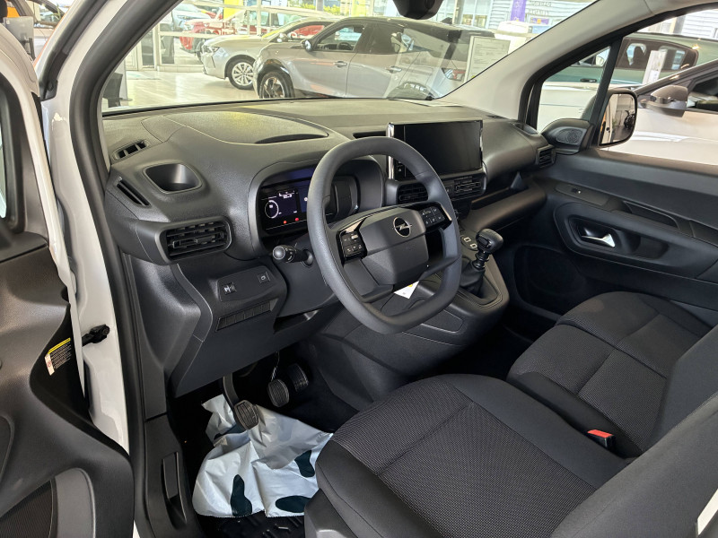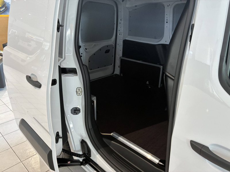 6 anneaux d'arrimage au sol dans la zone de chargement / Boîte à gants fermée et réfrigérée en partie haute côté passager / Boîte à gants ouverte en partie basse côté passager / Boîte manuellle à 6 vitesses / Capucine / Cloison pleine fixe / Commutation automatique feux de route / Connect Box avec Pack SOS et assistance inclus / Détection de sous-gonflage / Essuie-vitre AV Magic Wash / Feux EcoLED: feux de route et feux de croisement / Frein de stationnement électrique / Jantes tôle 15'' grises avec pneumatiques 195/65 R15 95H - Renforce / Kit de dépannage provisoire de pneumatiques / Lève-vitres électriques conducteur et passager / Pack Safety Alerte risque collision & Freinage d'urgence, Lecture des panneaux de vitesse, Détection & Alerte somnolence, Alerte franchissement de ligne avec correction / Peinture opaque Blanc Icy / Portes AR battantes 60/40 tôlées avec ouverture à 180° / Preventive Maintenance (abonnement 4 ans inclus) / Prise 12V sur planche de bord / Revêtement de sol en moquette dans l'habitacle / Sellerie Tissu Curitiba Triton Meltem / Siège conducteur avec réglage en longueur et dossier inclinable / Siège passager individuel réglable en inclinaison, appuis tête réglable en hauteur / Station d'accueil pour smartphone - Entrée avec reconnaissance vocale pour un seul smartphone, commandes au volant, 2 ports USB (2 charges)