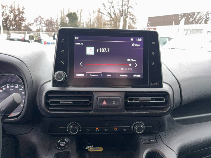4HP / Aide au stationnement Avant et Arrière, avec Caméra de rétrovision avec écran de contrôle à l'emplacement du rétroviseur intérieur et rétroviseurs extérieurs rabattables électriquement. / Caméra Opel eye Avertisseur de changement de voie intempestif, reconnaissance des panneaux de signalisation couplée au régulateur/limiteur de vitesse, alerte anti-collision, alerte somnolence / Clé Opel mains libres et airbag passager / Cloison complète tôlée / Enjoliveurs pleine roue / Frein de stationnement électrique / Inserts décoratifs chromés autour de l'ordinateur de bord / Kit anti-crevaison / Lève-vitres électriques conducteur et passager, à impulsion côté conducteur / Pack Visibilité / Pare-chocs AV et AR couleur carrosserie / Poignées de portes extérieures couleur carrosserie / Poignées de portes intérieures chromées / Portes AR battantes asymétriques 2/3 (gauche) - 1/3 (droite) / Radio Multimédia écran tactile 8'', port USB, avec Bluetooth (mains-libres et streaming audio), compatible AppleCarPlay et Android Auto, avec système digital audio intégré DAB/DAB+/DMB-R / Rail(s) de porte(s) latérale(s) couleur carrosserie / Rangement supérieur / Régulateur/limiteur de vitesse avec commandes aux volant / Siège conducteur confort avec support lombaire et réglage sur 6 voies avec accoudoir