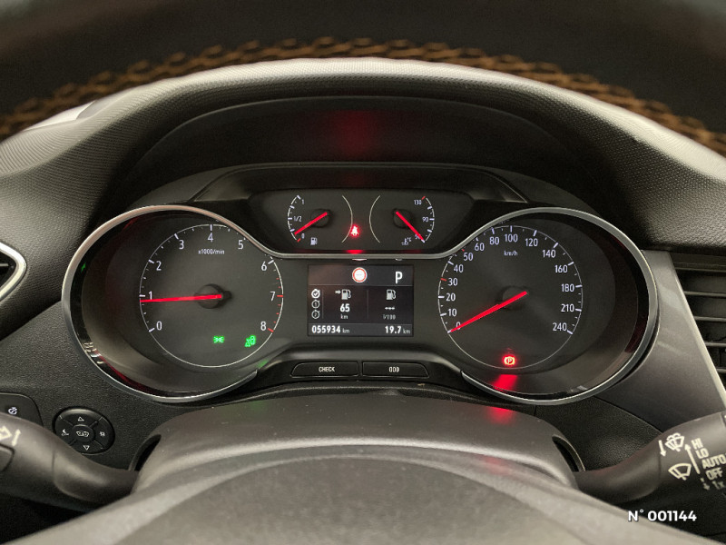 Poignées de portes et coques de rétroviseurs extérieurs peintes couleur carosserie / Poche de rangement au dos des sièges AV / Seuils de portes AV chromés / Kit anti-crevaison / Allumage automatique (5 fois par seconde) des feux stop en cas de freinage d'urgence / Allumage automatique des feux de détresse en cas de déclenchement des airbags et/ou des pré-tensionneurs / Verrou électronique Opel (antidémarrage) / Cache-bagages rigide avec glissière de rangement au dos de la banquette AR / Jantes alliage 17" taillées au diamant Technical Grey / Vitres latérales et lunette AR surteintées / Rails de toit chromés / Toit vitré panoramique avec rails de toit chromés et pare-soleil électrique / Pack Vision / Pack Modularité / Double plancher de chargement "Flex Floor" / Ligne de vitrage supérieure chromée / ESP Plus avec Système antiblocage des roues (ABS) / Contrôle de traction électronique (TCS+MSC) / Caméra Opel Eye (alerte de changement de voie intempestif, reconnaissance des panneaux de signalisation couplée au régulateur / limiteur de vitesse / Pack Sécurité / Tapis de sol velours / Toit contrasté Noir Profond / Navi 5.0 IntelliLink: Fonctionnalités identiques au système R4.0 IntelliLink avec en plus écran tactile 8'', 2ème prise USB, navigation par satellite avec cartogaphie Europe 3D , reconnaissance vocale, écran d'instrumentation de bord couleur 3,5 / Eclairage d'ambiance dans les contre-portes / Sièges AR latéraux avec fixations ISOFIX / Alerte de non bouclage des ceintures de sécurité aux 5 places / Clé Opel mains libres : déverrouillage et démarrage sans clé / Lampes de lecture à l' AV / Barre de calandre et sabots AV/AR peints dans la couleur du toit contrasté / Prise 12V à l'AR de la console centrale (suppression prise 230V) / Extinction differée des phares "Porte-à-porte" / Sièges AV ergonomiques certifiés AGR avec réglage lombaire électrique, réglage des sièges dans 8 positions dont la hauteur, l'inclinaison et la longuer d'assise / Ceintures de sécurité AV et latérales AR avec prétensionneur et limiteur d'effort / Alarme sonore d'oubli d'extinction des feux / Alerte de sous-gonflage des pneumatiques / Instrumentation de bord avec cerclages chromés / Pack City 180°