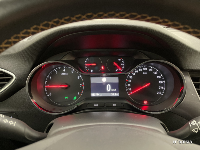 Poignées de portes et coques de rétroviseurs extérieurs peintes couleur carosserie / Kit anti-crevaison / Allumage automatique (5 fois par seconde) des feux stop en cas de freinage d'urgence / Allumage automatique des feux de détresse en cas de déclenchement des airbags et/ou des pré-tensionneurs / Verrou électronique Opel (antidémarrage) / Cache-bagages rigide avec glissière de rangement au dos de la banquette AR / Barre de calandre chromée / Extinction differée des phares "Porte-à-porte" / Alarme sonore d'oubli d'extinction des feux / Alerte de sous-gonflage des pneumatiques / Climatisation manuelle avec système de recirculation d'air et filtre anti-pollen / Coques de rétroviseurs et poignées de portes extérieures couleur carrosserie / Ceintures de sécurité 3 points à enrouleur AV et latérales AR avec prétensionneur et limiteur d'effort / Rappel de bouclage de ceinture intelligent à l'AV et à l'AR / ESP Plus avec Système antiblocage des roues (ABS) / Contrôle de traction électronique (TCS+MSC) / Caméra Opel Eye (alerte de changement de voie intempestif, reconnaissance des panneaux de signalisation couplée au régulateur / limiteur de vitesse / Instrumentation de bord muni d'un écran 3.5'' monochrome blanc avec ordinateur de bord / R4.0 IntelliLink:Système multimedia avec écran tactile 7'', 4x20W, 6 HP, radio AM/FM, USB, Bluetooth mains libres, audio streaming, Apple CarPlay & Android Auto pour l'utilisation de certaines applications du Smartphone / Sièges AR latéraux avec fixations ISOFIX / Alerte de non bouclage des ceintures de sécurité aux 5 places / Toit couleur carrosserie / Ceintures de sécurité AV et latérales AR avec prétensionneur et limiteur d'effort