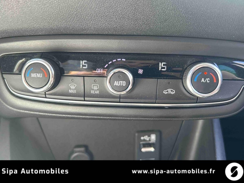 Airbag passager déconnectable depuis la console centrale avec témoin sur tableau de bord / Alarme sonore d'oubli d'extinction des feux / Allumage automatique (5 fois par seconde) des feux stop en cas de freinage d'urgence / Allumage automatique des feux de détresse en cas de déclenchement des airbags et/ou des pré-tensionneurs / Bacs de rangement intégrés aux portes AV et AR / Cache-bagages rigide avec glissière de rangement au dos de la banquette AR / Caméra Opel Eye (alerte de changement de voie intempestif, reconnaissance des panneaux de signalisation couplée au régulateur / limiteur de vitesse) / Carrosserie galvanisée / Ceintures de sécurité 3 points à enrouleur AV et latérales AR avec prétensionneur et limiteur d'effort / Clé rétractable avec télécommande intégrée / Contrôle de traction électronique (TCS+MSC) / Coques de rétroviseurs et poignées de portes extérieures couleur carrosserie / Double plancher de chargement "Flex Floor" / Eclairage d'ambiance dans les contre-portes / ESP Plus avec Système antiblocage des roues (ABS) / Extinction differée des phares "Porte-à-porte" / Flex Floor: Double plancher de chargement (espace de rangement sous le plancher du coffre) / Instrumentation de bord avec cerclages chromés / Instrumentation de bord muni d'un écran 3.5'' couleur avec ordinateur de bord / Jantes alliage 17" taillées au diamant Technical Grey / Kit anti-crevaison / Ligne de vitrage supérieure chromée / OnStar avec point d'accès Wi-Fi 4G : votre assistant personnel pour la connectivité et les services / Plafonnier AR avec double spot de lecture / Plafonniers AV / Poches aumonières au dos des sièges AV / R4.0 IntelliLink:Système multimedia avec écran tactile 7'', 4x20W, 6 HP, radio AM/FM, USB, Bluetooth mains libres, audio streaming, Apple CarPlay & Android Auto pour l'utilisation de certaines applications du Smartphone / Rappel de bouclage de ceinture sécurité intelligent places AV et AR / Rétroviseurs extérieurs électriques et dégivrants de couleur noire / Sabots AV et AR façon aluminium / Seuils de portes chromés "Opel" / Verrou électronique Opel (antidémarrage) / Vitres électriques AV à impulsion et fonction anti-pincement / Vitres latérales et lunette AR surteintées