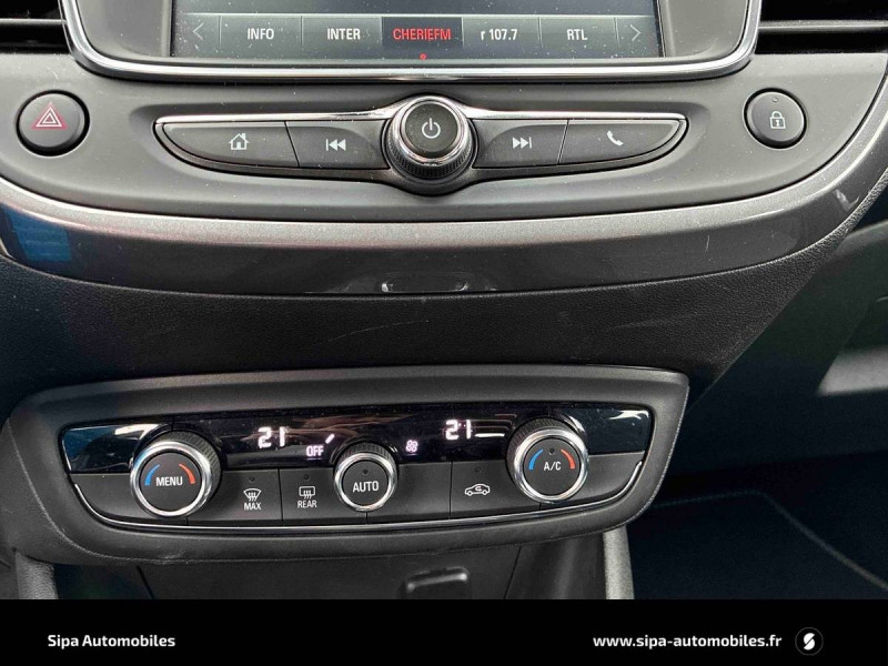 3ème appui-tête AR / Antenne courte / Banquette AR 60/40 / Caméra Opel Eye (alerte de changement de voie intempestif, reconnaissance des panneaux de signalisation couplée au régulateur / limiteur de vitesse) / Cerclage d'instrumentation chromé / Climatisation automatique bi-zone avec filtre à particule et filtration des odeurs / Eclairage d'ambiance dans les contre-portes / Grille de radiateur noire avec barre chromée / Instrumentation digitale de 3,5" / Jantes alliage 16" 10 branches - Argent / Kit anti-crevaison / Lampes de lecture à l' AV / Ligne de vitrage chromée / Pack Visibilité / Plafonnier avec double spot de lecture / Poche de rangement au dos des sièges AV / Poignées de portes couleur carrosserie / Sabots AV et AR façon aluminium / Seconde clé rigide / Sécurité enfants aux portes AR / Siège conducteur ergonomique certifié AGR / Spoiler AR Noir Karbon / Système Multimédia avec écran tactile 7'', 4x20W, 6 HP, radio DAB, USB, Bluetooth mains libres, audio streaming, Apple CarPlay & Android Auto / Volant cuir multifonctions 3 branches avec méplat