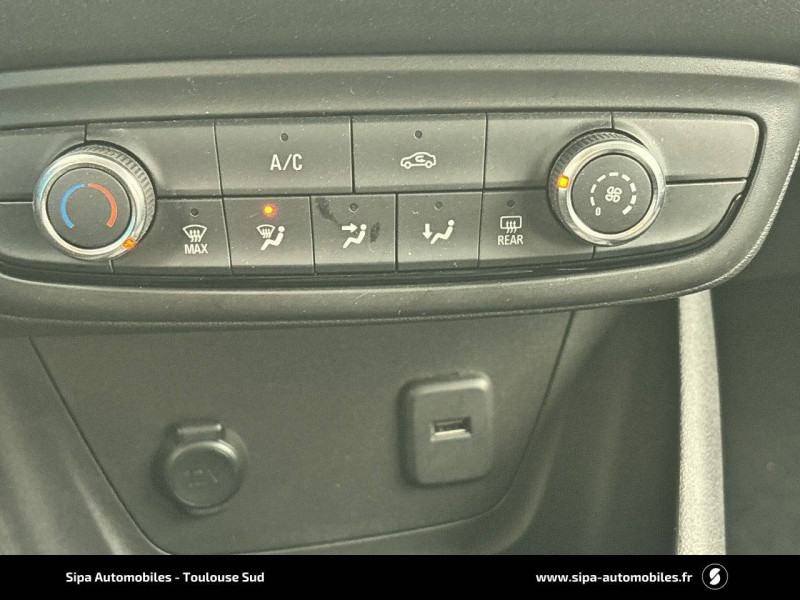 3ème appui-tête AR / Alerte anti-somnolence / Antenne courte / Banquette AR 60/40 / Caméra Opel Eye (alerte de changement de voie intempestif, reconnaissance des panneaux de signalisation couplée au régulateur / limiteur de vitesse) / Coquilles de rétroviseurs noirs Karbon / Grille de radiateur noire avec barre chromée / Jantes alliage 16" 5 branches - Noir / Argent / Kit anti-crevaison / Ligne de vitrage noire / Plafonnier avec double spot de lecture / Poignées de portes couleur carrosserie / Seconde clé rigide / Sécurité enfants aux portes AR / Spoiler AR Noir Karbon / Système Multimédia avec écran tactile 7'', 4x20W, 6 HP, radio DAB, USB, Bluetooth mains libres, audio streaming, Apple CarPlay & Android Auto / Volant cuir multifonctions 3 branches avec méplat