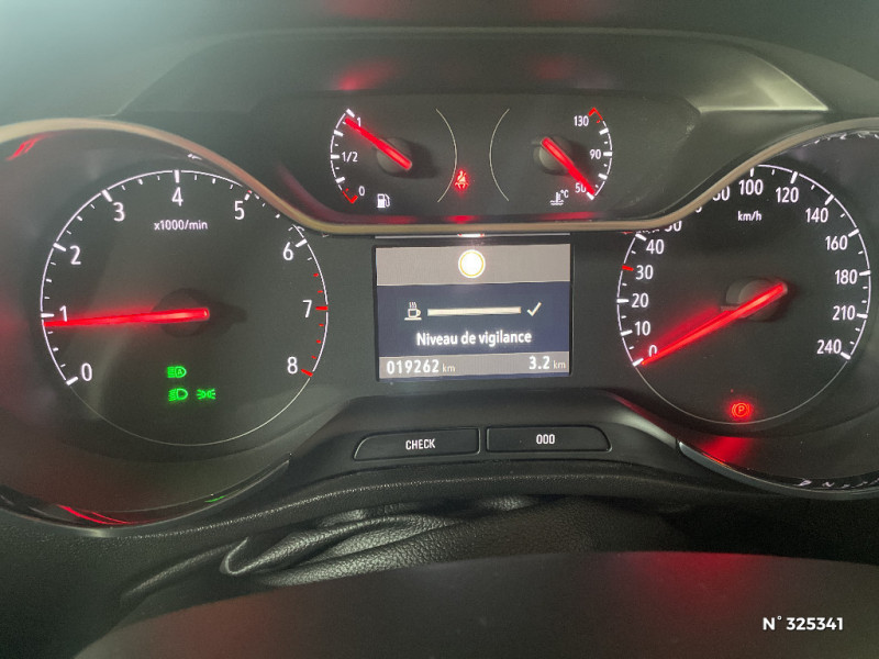 Banquette AR 60/40 / Caméra Opel Eye (alerte de changement de voie intempestif, reconnaissance des panneaux de signalisation couplée au régulateur / limiteur de vitesse) / Cerclage d'instrumentation chromé / Climatisation automatique bi-zone avec filtre à particule et filtration des odeurs / Pack Visibilité / Pack Visibilité / Pack Visibilité / Pack Visibilité / Peinture bi-ton avec toit Noir / Phares AV Eco LED - Allumage automatique des feux, Feux de jour à LED / Plafonnier avec double spot de lecture / Plafonnier avec spot de lecture / Plafonniers AV avec double spot de lecture / Poche de rangement au dos des sièges AV / Poignées de portes couleur carrosserie / Prise 12V à l'AV sur la console centrale / Radio FM/AM/DAB / Reconnaissance des panneaux de signalisation couplée au régulateur / limiteur de vitesse / Rétroviseur intérieur électrochromatique / Sabots AV et AR façon aluminium / Seconde clé rigide / Sécurité enfants aux portes AR / Sellerie mixte Tissu / TEP Sparkle / Sellerie tissu "Banda" / Siège conducteur ergonomique certifié AGR / Siège conducteur ergonomique certifié AGR, réglable dans 8 directions avec réglage lombaire / Siège passager AV réglable dans 4 positions / Kit anti-crevaison / Sièges conducteur et passager réglables dans 4 directions / Spoiler AR Noir Karbon / Système Multimédia avec écran tactile 7'', 4x20W, 6 HP, radio DAB, USB, Bluetooth mains libres, audio streaming, Apple CarPlay & Android Auto / Toit couleur carrosserie / Toit Noir Karbon / Climatisation automatique bi-zone avec filtre à particule et filtration des odeurs / Climatisation automatique bi-zone avec filtre à particule et filtration des odeurs / Contrôle automatique des feux de route / Coquilles de rétroviseurs noirs Karbon / Lampes de lecture à l' AV / Ligne de vitrage chromée / Ligne de vitrage chromée / Ligne de vitrage chromée / Ligne de vitrage chromée / Multimedia Navi Pro Ecran tactile central de 8'' - Navigation avec cartographie Europe 3D - Reconnaissance vocale - Apple CarPlay et Android Auto - Ecran d'instrumentation digitale de 3,5" - 2 USB / Coquilles de rétroviseurs noirs Perla Nera / Eclairage d'ambiance dans les contre-portes / Vitres AV et AR électriques à ouverture séquentielle, anti-pincement / Vitres latérales et lunette AR surteintées / Volant cuir multifonctions 3 branches avec méplat / 2 clés à plip / 2 pare-soleil avec miroir de courtoisie éclairé par LED / 3ème appui-tête AR / 6 haut parleurs / Accoudoir central AR avec trappe à ski et Double plancher de chargement "Flex Floor" / Filtre à pollen, odeurs et particules fines / Filtre anti-particules, pollen et odeur / Freins à disques AV et AR / Grille de radiateur noire avec barre chromée / Instrumentation analogique avec écran 3,5'' / Instrumentation digitale de 3,5" / Jantes alliage 16" - Diamanté Pneus 195/60 R16 / Jantes alliage 16" - Diamanté Pneus 205/60 R16 / Jantes alliage 16" 10 branches - Argent / Jantes alliage 16" 10 branches - couleur Argent / Jantes alliage 16" 10 branches - couleur Argent / Jantes alliage 16" 10 branches - couleur Argent / Jantes alliage 16" 10 branches - couleur Noire/Argent / Jantes alliage 16" 10 branches - couleur Noire/Argent / Jantes alliage 16" 10 branches - couleur Noire/Argent Pneus 205/60 R16 / Aide au stationnement avant et arrière avec caméra panoramique 180° / Alerte anti-collision sonore et visuelle / Alerte anti-somnolence / Alerte de changement de voie intempestif / Alerte de sous-gonflage des pneumatiques / Antenne courte / Banquette AR 40/60 avec trois appuis têtes