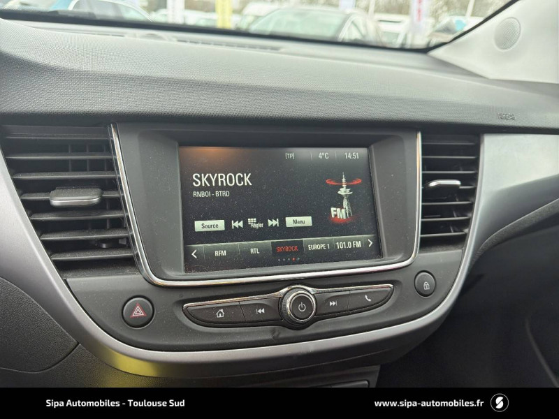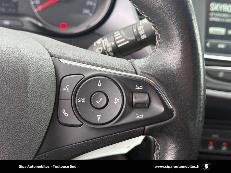 3ème appui-tête AR / Alerte anti-somnolence / Antenne courte / Banquette AR 60/40 / Caméra Opel Eye (alerte de changement de voie intempestif, reconnaissance des panneaux de signalisation couplée au régulateur / limiteur de vitesse) / Coquilles de rétroviseurs noirs Perla Nera / Grille de radiateur noire avec barre chromée / Jantes alliage 16" 5 branches - Noir / Argent / Kit anti-crevaison / Ligne de vitrage noire / Plafonnier avec double spot de lecture / Poignées de portes couleur carrosserie / Seconde clé rigide / Sécurité enfants aux portes AR / Spoiler AR Noir Karbon / Système Multimédia avec écran tactile 7'', 4x20W, 6 HP, radio DAB, USB, Bluetooth mains libres, audio streaming, Apple CarPlay & Android Auto / Volant cuir multifonctions 3 branches avec méplat