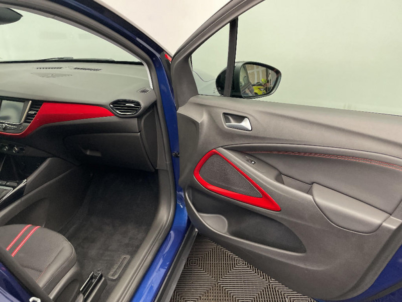 Ligne de vitrage rouge / Kit anti-crevaison / Pack Visibilité / Plafonnier avec spot de lecture / Peinture bi-ton avec Toit Noir Karbon / Banquette AR 60/40 / Logos Opel Noir / Contrôle automatique des feux de route / Monagrammes AR noir / Contour de calandre Vizor noir / Lampes de lecture à l' AV / Rétroviseur intérieur électrochromatique / Coquilles de rétroviseurs noirs Karbon / Sabots AV et AR noirs / Eclairage d'ambiance dans les contre-portes / Poche de rangement au dos des sièges AV / Siège conducteur ergonomique certifié AGR / Pack Sécurité / Poignées de portes couleur carrosserie / 3ème appui-tête AR / Grille de radiateur noire avec barre chromée / Seconde clé rigide / Freinage automatique d'urgence actif de 5 à 85 km/h avec détection des piétons / Alerte de somnolence du conducteur / Alerte anti-collision sonore et visuelle sur l'écran d'instrumentation de bord / Instrumentation digitale de 3,5" / Caméra Opel Eye (alerte de changement de voie intempestif, reconnaissance des panneaux de signalisation couplée au régulateur / limiteur de vitesse) / Système Multimédia avec écran tactile 7'', 4x20W, 6 HP, radio DAB, USB, Bluetooth mains libres, audio streaming, Apple CarPlay & Android Auto / Volant cuir multifonctions 3 branches avec méplat / Toit Noir / Vitres latérales et lunette AR surteintées / Alerte de changement de voie intempestif / Jantes alliage 17" 5 doubles branches couleur Noire / Spoiler AR Noir / Sécurité enfants aux portes AR / Antenne courte
