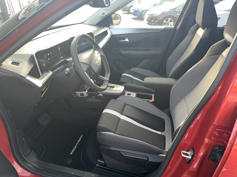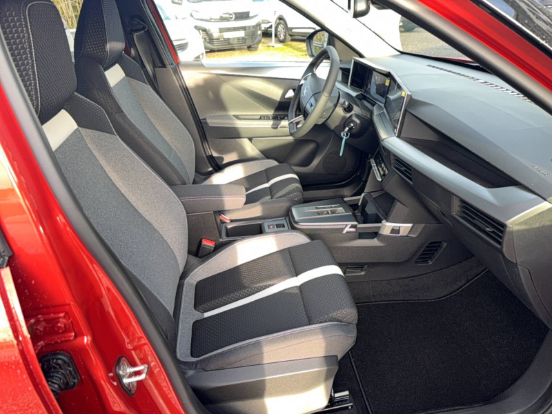 1 cléà télécommande et seconde clé rigide / 2 HP à l'AV / 3 Ports USB-C (1 AV et 2 AR) / 6 HP / Airbags frontaux et latéraux conducteur et passager AV, rideaux (6 airbags) / Air conditionné automatique mono-zone avec 6 aérateurs (4 AV et 2 AR) / Alerte de sous-gonflage des pneumatiques / Allumage et commutation automatique des feux de route/croisement / Arches de roues Noir grainé / Calandre Opel Vizor / Combiné instrumentation numérique 10" / Console centrale avec porte gobelet / Coques de rétroviseurs Noir laqué / Décor intérieur Noir laqué et Argent / Détection de non-bouclage des ceintures de sécurité aux places AV/AR / Ecran infotainment de 10'' Pure Panel / Eléments de carrosserie Noir laqué latérales / Jantes alliage 17" Diamanté Pneus 215/60 R17 / Lettrage AR central - Noir / Logo AV Noir / Navigation / Opel Connect avec e-call / b-call / Pack Confort - Sellerie en tissu recyclé GS - Gris et Noir - Sièges AV ergonomiques et chauffants avec poches aumonières - Volant TEP chauffant - Parebrise chauffant - Appuis tête AV et AR réglables sur 2 voies - Air conditionné automatique mono-zone avec 6 aérateurs / Pack Drive Assist - Aide active au maintien dans la voie - Aide au démarrage en côte - Aide au freinage d'urgence - Alerte anti-somnolence - Régulateur et Limiteur de vitesse - Reconnaissance des panneaux de signalisation étendue / Peinture bi-ton avec Toit Noir Karbon / Phares AR à LED / Phares AV Eco LED intelliLED / Plancher de coffre modulable 2 positions / Poignées intérieur - Argent / Radio FM/AM/DAB+ / Rangement central flexible à sangles / Reconnaissance vocale / Réglage manuel des feux / Rétroviseur intérieur électrochromatique "Frameless" / Sabots de protection AV/AR Argent / Sellerie Tissu ''Intelli-Seat'' Gris/ Noir / Siège conducteur et passager ergonomique Intelli-Seat avec poches aumonières / Siège passager réglable sur 4 voies / Station d'accueil Smartphone / Système de freinage avec antiblocage des roues (ABS) / Verrouillage centralisé avec télécommande et en roulant