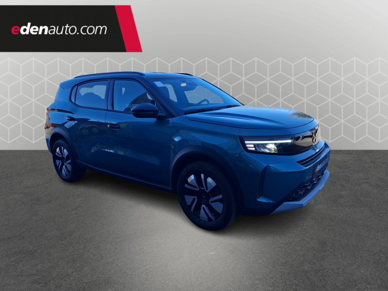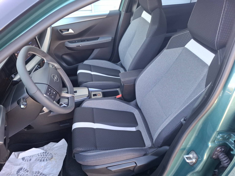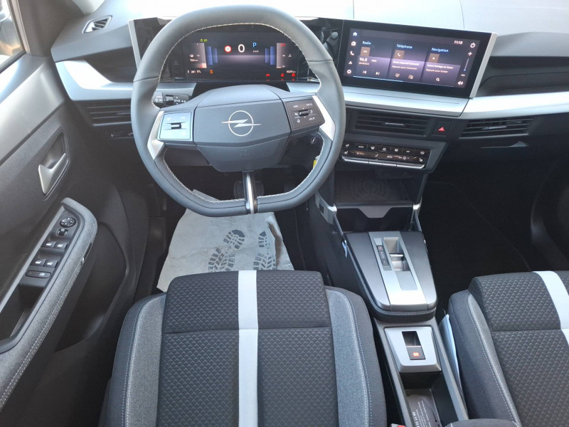 1 cléà télécommande et seconde clé rigide / 2 HP à l'AV / Airbags frontaux et latéraux conducteur et passager AV, rideaux (6 airbags) / Air conditionné manuel avec filtre à polen et 4 aérateurs à l'AV / Alerte de sous-gonflage des pneumatiques / Allumage et commutation automatique des feux de route/croisement / Arches de roues Noir grainé / Calandre Opel Vizor / Combiné instrumentation numérique 10" / Console centrale avec porte gobelet / Coques de rétroviseurs Noir grainé / Décor intérieur Noir laqué et Argent / Détection de non-bouclage des ceintures de sécurité aux places AV/AR / Jantes acier 16" avec enjoliveurs bi-ton Pneus 215/65 R16 / Lettrage AR central - Noir / Logos Opel Argent / Opel Connect avec e-call / b-call / Pack Drive Assist - Aide active au maintien dans la voie - Aide au démarrage en côte - Aide au freinage d'urgence - Alerte anti-somnolence - Régulateur et Limiteur de vitesse - Reconnaissance des panneaux de signalisation étendue / Pare-soleils avec miroir de courtoisie conducteur et passager AV / Phares AV Eco LED intelliLED / Plancher de coffre modulable 2 positions / Poignées intérieur - Noir grainé / Rangement central flexible à sangles / Reconnaissance vocale / Réglage manuel des feux / Sellerie Tissu "RIAZ" Noir/ Bleu/ Gris / Siège passager réglable sur 4 voies / Station d'accueil Smartphone / Système de freinage avec antiblocage des roues (ABS) / Verrouillage centralisé avec télécommande et en roulant