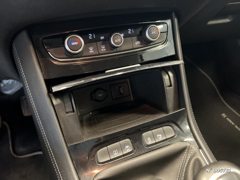 3 Appuis-tête en 2ème rangée / Indicateur de ceintures attachées (5 sièges) / 6 HP / Instrumentation 3D avec cerclages chromés / Jantes en alliage léger 18'' avec pneus 225/55 R18 / Kit anti-crevaison / Ligne de vitrage chromée / Lumière d'ambiance dans la console centrale et les portes AV / OnStar avec point d'accès Wi-Fi 4G : votre assistant personnel pour la connectivité et les services / OnStar avec point d'accès Wi-Fi 4G : votre assistant personnel pour la connectivité et les services / Pack Caméra Opel Eye / Pack Flexibilité / Pack Park & Go 1 / Pare-soleil avec miroir de courtoisie éclairé / Passage automatique feux de route/feux de croisement / Pédalier rétractable en cas de choc frontal (PRS) / Poches aumonières au dos des sièges AV / Poignées de portes avec inserts chromés / Poignées de portes couleur carrosserie / Pommeau de levier de vitesse cuir / Possiblité de déconnecter l'airbag du siège passager AV / Régulateur et limiteur de vitesse programmable / Rétroviseur intérieur électrochromatique / R4.0 IntelliLink : écran tactile 7''avec une radio, USB, compatible Apple CarPlay & Android Auto Bluetooth mains libres, audio streaming, utilisation de certaines applications du Smartphone / Sabots de protection AV/AR "Silver" / Siège confort avec réglable en hauteur du siège conducteur et passager / Spots de lecture AR / Spots de lecture AV / Verrou électronique Opel (antidémarrage) / Verrouillage centralisé (portes, coffre et trappe à carburant) à télécommande / Volant gainé cuir avec commandes au volant / ABS et EBD / Airbags Opel conducteur, passager, latéraux sur sièges AV et rideaux / Boîte à gants éclairée et ventilée / Ceintures de sécurité AV réglables en hauteur avec double prétensionneurs et limiteur d'effort / Clé Opel mains-libres ouverture et démarrage sans clé / Clignotants AV / Climatisation automatique bi-zone avec filtre anti-particule et odeur, capteur d'humidité / Console centrale avec accoudoir, rangement fermé et porte-gobelets / Dossier de banquette AR rabattable asymétriquement 2/3 - 1/3 / Eléments de décoration Doré Sanora / Eléments de décoration Gris Toba / ESP Plus avec Système antiblocage des roues (ABS) / Frein à main électrique / Hayon motorisé avec ouverture mains-libres (détection des mouvements du pied sous le pare-chocs) / 5 ceintures de sécurité 3 points à enrouleur AV et AR