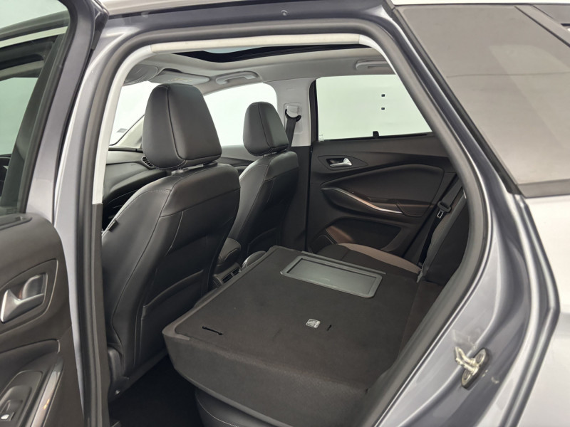 Spots de lecture AV et AR / Système antiblocage des roues (ABS électronique) avec Répartition électronique du freinage (EBD) / Verrou électronique Opel (antidémarrage) / Verrouillage centralisé (portes, coffre et trappe à carburant) à télécommande / 3 Appuis-tête sur banquette AR / 5 ceintures de sécurité 3 points à enrouleur AV et AR / Airbags Opel conducteur et passager, latéraux sur sièges AV et rideaux (déconnectable côté passager AV) / Cache-bagage / Caméra de recul avec lignes de guidage sur l'écran multimédia (supprime la fonction rétroviseurs extérieurs rabattables électriquement) / Caméra Opel Eye avec fonctions étendues (avertisseur de changement de voie intempestif avec impulsion sur le volant en cas de déport, indicateur de distance, alerte anticollision, freinage automatique d'urgence avec détection piéton, système d'alerte anti-somnolence) / Clé Opel mains-libres ouverture et démarrage sans clé / Climatisation automatique bi-zone avec filtre anti-particule et odeur, capteur d'humidité / Console centrale avec accoudoir, rangement fermé et 2 porte-gobelet (seulement 1 avec Pack All Road) / Dossier AR rabattable asymétriquement 2/3 - 1/3 / Eléments de décoration Gris Toba / ESP Plus avec Système antiblocage des roues (ABS) / Feux de jour, clignotants AV et feux AR à LED / Frein à main électrique / Hayon motorisé avec ouverture mains-libres (détection des mouvements du pied sous le pare-chocs) / Indicateur de ceintures attachées (5 sièges) / Jantes en alliage léger 18'' avec pneus 225/55 R18 / Ligne de vitrage chromée / Lumière d'ambiance dans la console centrale et les portes AV / Navi 5.0 IntelliLink écran tactile 8'' avec cartographie Europe, 2 prises USB, Bluetooth, audio streaming, reconnaissance vocale, compatible Apple CarPlay et Android Auto, 6 HP / Ordinateur de bord avec écran couleur 3,5'' / Pédales Aluminium / Pédalier rétractable en cas de choc frontal (PRS) / Phares LED adaptatifs directionnels AFL avec éclairage d'intersection, réglage automatique de l'assiette / Poches aumonières au dos des sièges AV / Poignées de portes couleur carrosserie / Prise électrique 230V à l'AR de la console centrale et prise 12V dans le coffre / Rails de toit anodisés / Rétroviseurs extérieurs couleur carrosserie / Roue de secours de taille réduite avec pneus 135/70 R18 / Sabots de protection AV/AR "Silver" / Siège confort avec réglable en hauteur du siège conducteur et passager / Pack Caméra Opel Eye / Pack Flexibilité / Pack Visibilité /