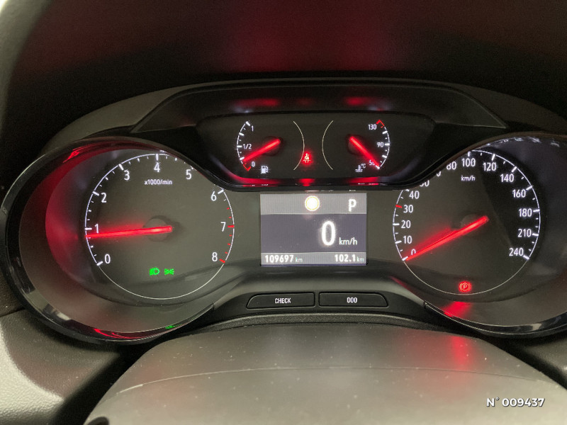 Volant multifonctions avec commandes radio, réglable en hauteur et en profondeur / Airbags Opel conducteur et passager, latéraux sur sièges AV et rideaux (déconnectable côté passager AV) / 5 ceintures de sécurité 3 points à enrouleur, avec indicateur de ceintures attachées / 6 HP / Spots de lecture AV / Indicateur de ceintures attachées (5 sièges) / Kit anti-crevaison / Ordinateur de bord avec écran couleur 3,5'' / Pédalier rétractable en cas de choc frontal (PRS) / Accoudoir central AR, trappe à ski commande permettant de rabattre le dossier de banquette depuis le coffre / Verrouillage centralisé (portes, coffre et trappe à carburant) à télécommande / Volant cuir multifonctions avec commandes radio, réglable en hauteur et en profondeur / Phares Eco LED / Poignées de portes couleur carrosserie / Régulateur et limiteur de vitesse programmable / Rétroviseurs extérieurs couleur carrosserie / R4.0 IntelliLink : écran tactile 7''avec une radio, USB, compatible Apple CarPlay & Android Auto Bluetooth mains libres, audio streaming, utilisation de certaines applications du Smartphone / Feux de jour, clignotants AV et feux AR à LED / Siège confort avec réglage en hauteur du siège conducteur / Sièges AV "Confort" avec réglage de la hauteur du siège conducteur / Système antiblocage des roues (ABS électronique) avec Répartition électronique du freinage (EBD) / Verrou électronique Opel (antidémarrage) / "ATTENTION" - Equipements en cours de saisie / Cache-bagage / Caméra Opel Eye : avertisseur de changement de voie intempestif, reconnaissance des panneaux de signalisation couplée au régulateur / limiteur de vitesse / Climatisation manuelle avec filtre anti-particule et odeur / Console centrale avec accoudoir, rangement fermé et 2 porte-gobelet (seulement 1 avec Pack All Road) / Console centrale avec frein de parking électrique, accoudoir, rangement fermé et 2 porte-gobelet / Contrôle électronique de stabilité - ESP Plus, avec système antiblocage des roues ABS et aide au démarrage en côte / Dossier de banquette AR rabattable asymétriquement 2/3 - 1/3 / Dossier de banquette AR rabattable 1/3 - 2/3 avec 3 appuis-tête / Eléments de décoration Gris Givre / 3 Appuis-tête sur banquette AR