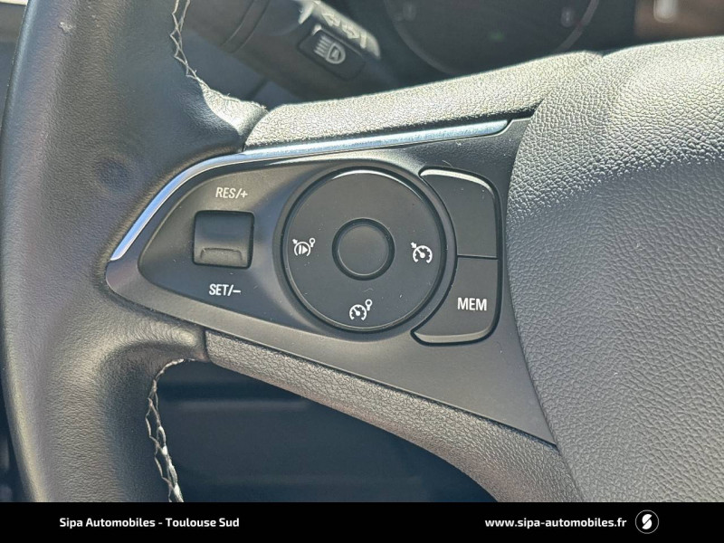 3 Appuis-tête sur banquette AR / 5 ceintures de sécurité 3 points à enrouleur, avec indicateur de ceintures attachées / 6 HP / Airbags Opel conducteur et passager, latéraux sur sièges AV et rideaux (déconnectable côté passager AV) / Badge "Opel 2020" et seuils de porte Opel / Cache-bagage / Caméra Opel Eye (alerte de changement de voie intempestif, reconnaissance des panneaux de signalisation couplée au régulateur / limiteur de vitesse) / Console centrale avec accoudoir, rangement fermé et 2 porte-gobelet (seulement 1 avec Pack All Road) / Contrôle électronique de stabilité - ESP Plus, avec système antiblocage des roues ABS et aide au démarrage en côte / Dossier de banquette AR rabattable asymétriquement 2/3 - 1/3 / Eléments de décoration Gris Givre / Feux de jour, clignotants AV et feux AR à LED / Frein à main électrique / Jantes alliage 18" 5 branches bicolores Black Gloss / Kit anti-crevaison / Ligne de vitrage chromée / Ordinateur de bord avec écran couleur 3,5'' / Pack Visibilité / Pédalier rétractable en cas de choc frontal (PRS) / Phares Eco LED / Poignées de portes couleur carrosserie / Prises 12V à l'AR de la console centrale et dans le coffre / R4.0 IntelliLink : écran tactile 7''avec une radio, USB, compatible Apple CarPlay & Android Auto Bluetooth mains libres, audio streaming, utilisation de certaines applications du Smartphone / Régulateur et limiteur de vitesse programmable / Rétroviseurs extérieurs couleur carrosserie / Sabots de protection AV/AR "Silver" / Siège confort avec réglage en hauteur du siège conducteur / Spots de lecture AV / Tapis de sol / Toit et coques de rétroviseurs extérieurs noires / Verrou électronique Opel (antidémarrage) / Verrouillage centralisé (portes, coffre et trappe à carburant) à télécommande / Volant multifonctions avec commandes radio, réglable en hauteur et en profondeur