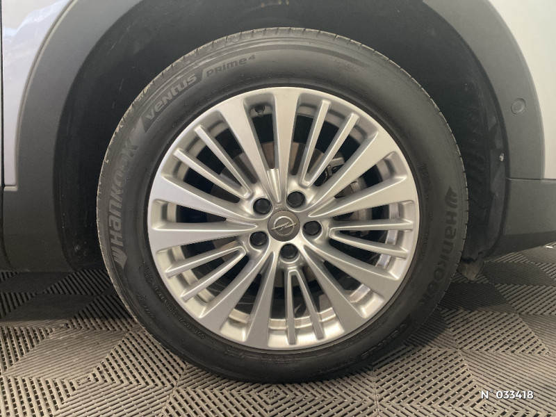 Dossier de banquette AR rabattable asymétriquement 2/3 - 1/3 / 6 HP / Clé Opel mains-libres ouverture et démarrage sans clé / Hayon motorisé avec ouverture mains-libres (détection des mouvements du pied sous le pare-chocs) / Cache bagages / Caméra Opel Eye (alerte de changement de voie intempestif, reconnaissance des panneaux de signalisation couplée au régulateur / limiteur de vitesse) / Pack Flexibilité / Prises 12V à l'AR de la console centrale et dans le coffre / Kit anti-crevaison / Poignées de portes couleur carrosserie / Rétroviseurs extérieurs couleur carrosserie / Spots de lecture AR / Spots de lecture AV / Ligne de vitrage chromée / Verrou électronique Opel (antidémarrage) / Pédalier rétractable en cas de choc frontal (PRS) / Frein à main électrique / 5 ceintures de sécurité 3 points à enrouleur, avec indicateur de ceintures attachées / Volant multifonctions avec commandes radio, réglable en hauteur et en profondeur / Siège confort avec réglage en hauteur du siège conducteur / Eléments de décoration Gris Toba / Lumière d'ambiance dans la console centrale et les portes AV / Sabots de protection AV/AR "Silver" / Feux de jour, clignotants AV et feux AR à LED / Ordinateur de bord avec écran couleur 3,5'' / Aide au stationnement avancée : détection et avertissement des emplacements, calcul de la trajectoire et gestion automatique de la direction / 3 Appuis-tête sur banquette AR / Airbags Opel conducteur et passager, latéraux sur sièges AV et rideaux (déconnectable côté passager AV) / Console centrale avec accoudoir, rangement fermé et 2 porte-gobelet (seulement 1 avec Pack All Road) / Pack Visibilité / Jantes alliage 18" 5 branches bicolores Technical Grey / Opel CONNECT / Contrôle électronique de stabilité - ESP Plus, avec système antiblocage des roues ABS et aide au démarrage en côte / Pack Park & Go 1 / Phares LED adaptatifs directionnels AFL avec éclairage d'intersection, réglage automatique de l'assiette / Navi 5.0 IntelliLink : Ecran tactile 8'' avec cartographie Europe, 2 prises USB, Bluetooth, audio streaming, commandes vocales, compatible Apple CarPlay et Android Auto / Verrouillage centralisé (portes, coffre et trappe à carburant) à télécommande