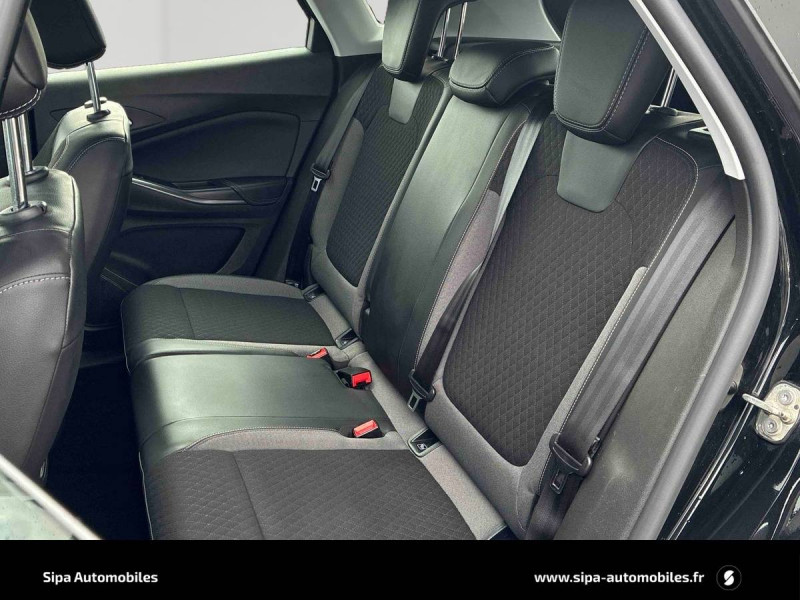 5 ceintures de sécurité 3 points à enrouleur, avec indicateur de ceintures attachées / 6 HP / Airbags Opel conducteur et passager, latéraux sur sièges AV et rideaux (déconnectable côté passager AV) / Cache-bagage / Caméra Opel Eye : avertisseur de changement de voie intempestif, reconnaissance des panneaux de signalisation couplée au régulateur / limiteur de vitesse / Console centrale avec frein de parking électrique, accoudoir, rangement fermé et 2 porte-gobelet / Contrôle électronique de stabilité - ESP Plus, avec système antiblocage des roues ABS et aide au démarrage en côte / Dossier de banquette AR rabattable 1/3 - 2/3 avec 3 appuis-tête / Eclairage du coffre / Eléments de décoration Gris Toba / Feux de jour, clignotants AV et feux AR à LED / Kit anti-crevaison / Ligne de vitrage chromée / Lumière d'ambiance dans la console centrale et les portes AV / Navi 5.0 IntelliLink : Ecran tactile 8'' avec cartographie Europe, 2 prises USB, Bluetooth, audio streaming, commandes vocales, compatible Apple CarPlay et Android Auto / Ordinateur de bord avec écran couleur 3,5'' / Pack Park & Go 3 / Pack Visibilité / Pédalier rétractable en cas de choc frontal (PRS) / Phares LED adaptatifs directionnels AFL avec éclairage d'intersection, réglage automatique de l'assiette / Poignées de portes couleur carrosserie / Prise électrique 230V à l'AR de la console centrale et prise 12V dans le coffre / Rechargeur smartphones par induction (selon norme PMA ou Qi, avec smartphone compatible uniquement) / Régulateur et limiteur de vitesse programmable / Rétroviseurs extérieurs couleur carrosserie / Sabots de protection AV/AR "Silver" / Siège conducteur réglable dans 6 directions, avec réglage lombaire et soutien pour les cuisses / Spots de lecture AR / Spots de lecture AV / Verrou électronique Opel (antidémarrage) / Verrouillage centralisé (portes, coffre et trappe à carburant) à télécommande / Volant cuir multifonctions avec commandes radio, réglable en hauteur et en profondeur