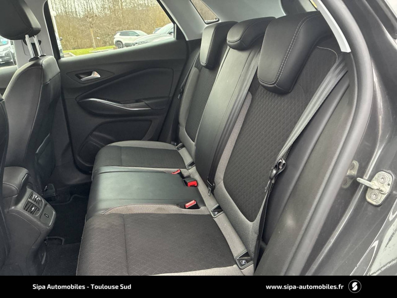 5 ceintures de sécurité 3 points à enrouleur, avec indicateur de ceintures attachées / 6 HP / Airbags Opel conducteur et passager, latéraux sur sièges AV et rideaux (déconnectable côté passager AV) / Cache-bagage / Caméra Opel Eye : avertisseur de changement de voie intempestif, reconnaissance des panneaux de signalisation couplée au régulateur / limiteur de vitesse / Console centrale avec frein de parking électrique, accoudoir, rangement fermé et 2 porte-gobelet / Contrôle électronique de stabilité - ESP Plus, avec système antiblocage des roues ABS et aide au démarrage en côte / Dossier de banquette AR rabattable 1/3 - 2/3 avec 3 appuis-tête / Eclairage du coffre / Eléments de décoration Gris Toba / Feux de jour, clignotants AV et feux AR à LED / Kit anti-crevaison / Ligne de vitrage chromée / Lumière d'ambiance dans la console centrale et les portes AV / Navi 5.0 IntelliLink : Ecran tactile 8'' avec cartographie Europe, 2 prises USB, Bluetooth, audio streaming, commandes vocales, compatible Apple CarPlay et Android Auto / Ordinateur de bord avec écran couleur 3,5'' / Pack Park & Go 3 / Pack Visibilité / Pédalier rétractable en cas de choc frontal (PRS) / Phares LED adaptatifs directionnels AFL avec éclairage d'intersection, réglage automatique de l'assiette / Poignées de portes couleur carrosserie / Prise électrique 230V à l'AR de la console centrale et prise 12V dans le coffre / Rechargeur smartphones par induction (selon norme PMA ou Qi, avec smartphone compatible uniquement) / Régulateur et limiteur de vitesse programmable / Rétroviseurs extérieurs couleur carrosserie / Sabots de protection AV/AR "Silver" / Siège conducteur réglable dans 6 directions, avec réglage lombaire et soutien pour les cuisses / Spots de lecture AR / Spots de lecture AV / Verrou électronique Opel (antidémarrage) / Verrouillage centralisé (portes, coffre et trappe à carburant) à télécommande / Volant cuir multifonctions avec commandes radio, réglable en hauteur et en profondeur