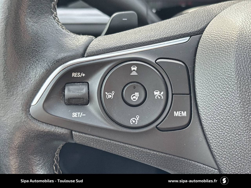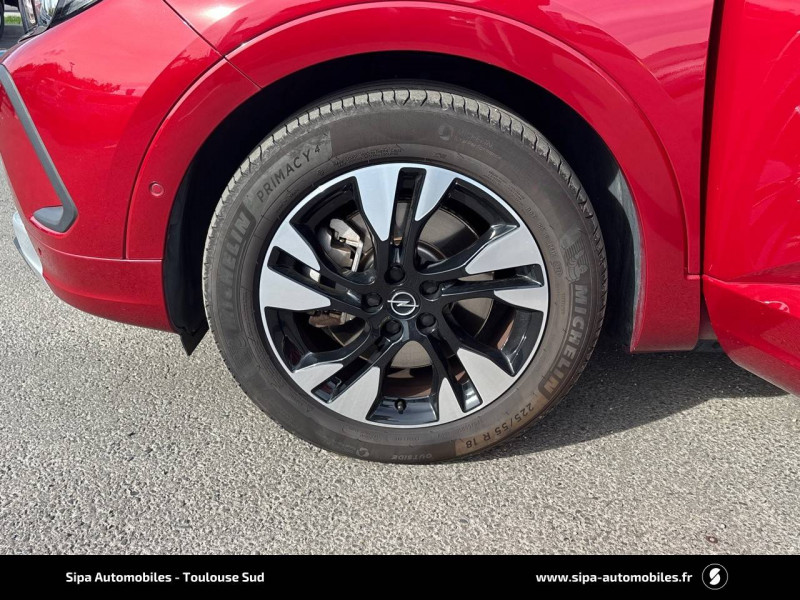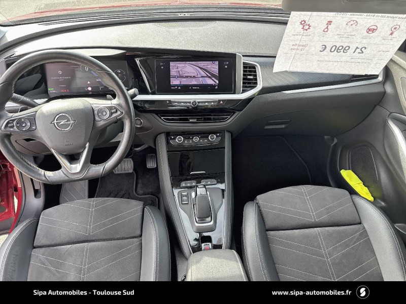 2 clés avec télécommande / 6 HP / Accoudoir avec rangement et 2 porte-gobelets / Aide au stationnement avancée : détection et avertissement des emplacements, calcul de la trajectoire et gestion automatique de la direction / Bas de pare-choc AV/AR arches de roue : couleur carrosserie / Calandre Opel Vizor / Caméra panoramique 360° / Chargeur embarqué 3,7 kW et câble de recharge mode 2 / Coquilles de rétroviseurs peintes en noir / Eclairage d'ambiance / Eclairage du coffre / Ecran d'instrumentation couleur 12" / Ecran tactile 10'' couleur avec Bluetooth / Jantes en alliage 18'', 5 doubles branches, bi-ton argent/noir / Kit anti-crevaison / Ligne de vitrage chromée / Module Opel Connect / Multimedia Navi Pro Ecran tactile central de 8'' - Navigation avec cartographie Europe 3D - Reconnaissance vocale - Apple CarPlay et Android Auto - Ecran d'instrumentation digitale de 3,5" - 2 USB / Opel PURE PANEL / Pack Active Drive Assist / Pack Caméra Opel Eye / Pack Eclairage AV / Pack Hiver AGR en combinaison avec Sellerie Harlequin / Pare-brise chauffant / Pare-soleil avec miroir de courtoisie éclairé / Pédalier Chromé / Phares AV adaptatifs inteliLux LED Pixel Light / Protections bas de porte couleur carrosserie / Rails de toit noir brillant / Rétroviseur avec alerte d'angle mort / Sabots de protection AV/AR "Silver" / Sécurité enfants / Siège conducteur avec réglage lombaire électrique et soutien pour les cuisses / Siège conducteur ergonomique certifié AGR / Siège passager AV avec reglage lombaire électrique et soutien pour les cuisses / Siège passager AV ergonomique certifié AGR / Siège passager AV réglable dans 6 directions / Spots de lecture AV et AR / Système anti-collision à tous niveaux de vitesse / Système de conduite semi-autonome / Système Isofix sièges latéraux AR / Toit Noir Karbon / Volant avec palette de changement de rapports / Volant cuir multifonctions 3 branches à méplat